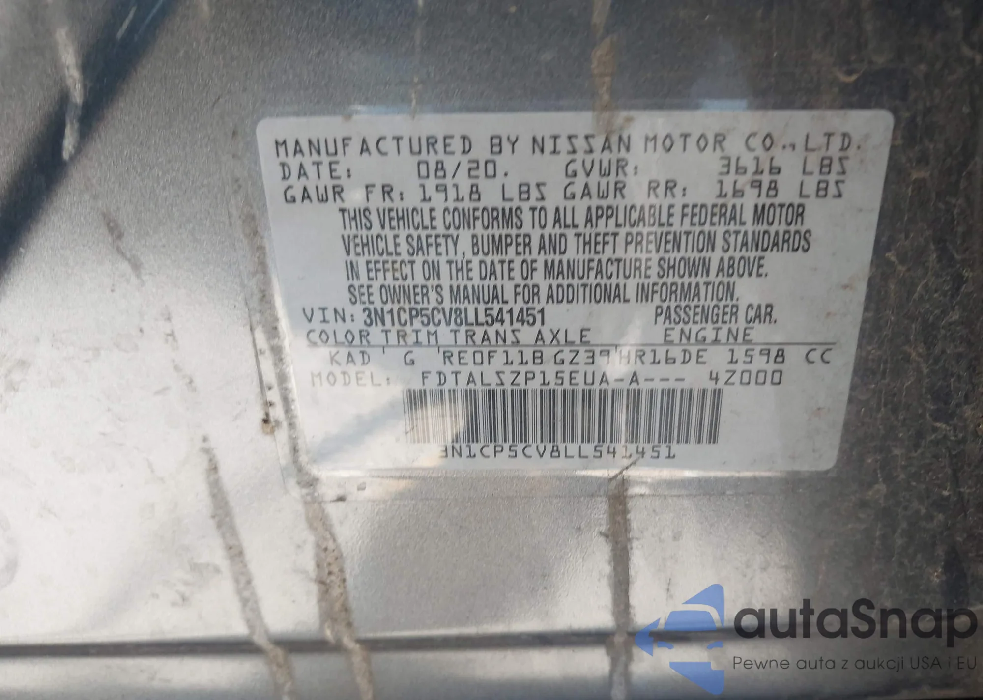 • VIN 3N1CP5CV8LL541451