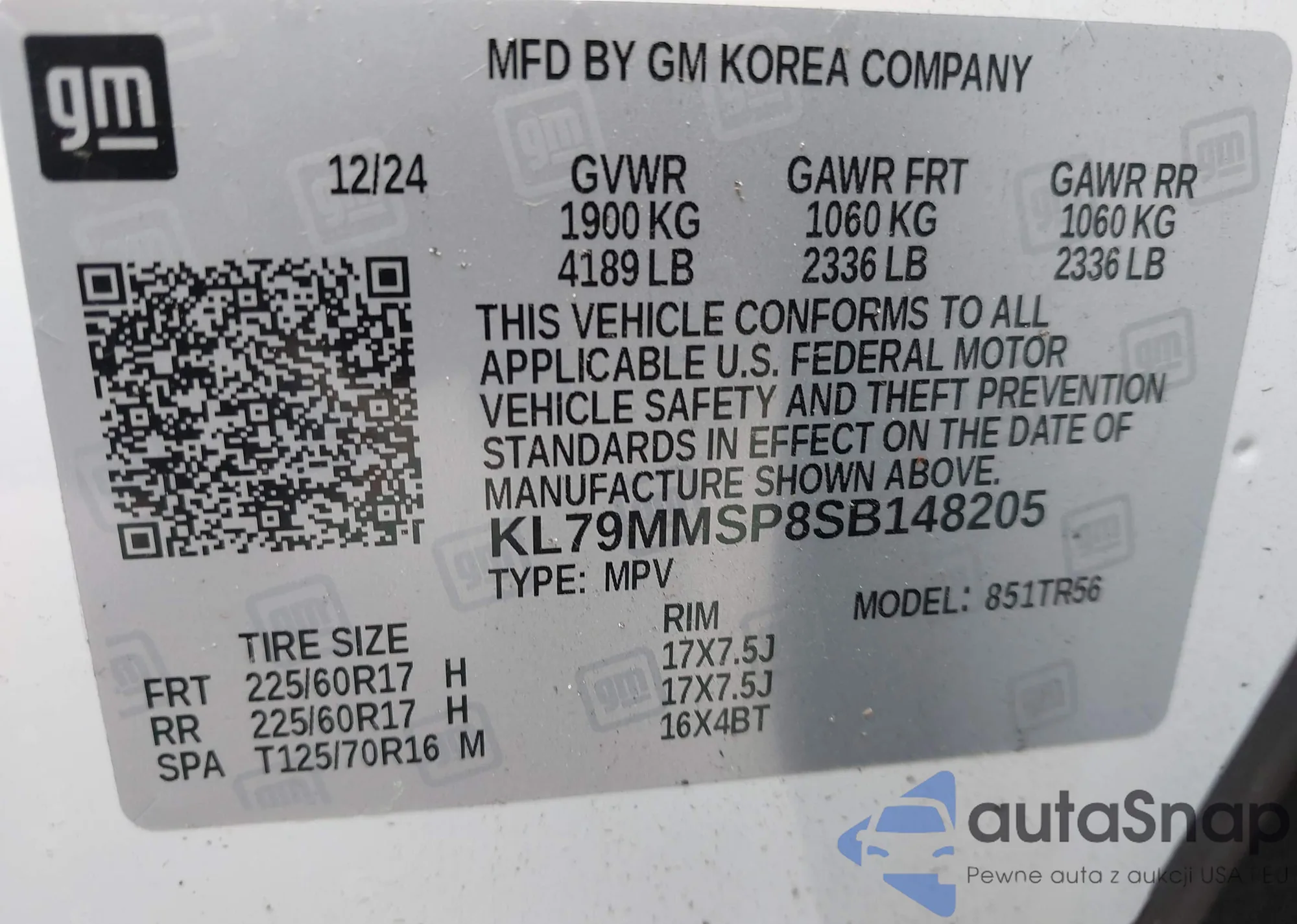 • VIN KL79MMSP8SB148205