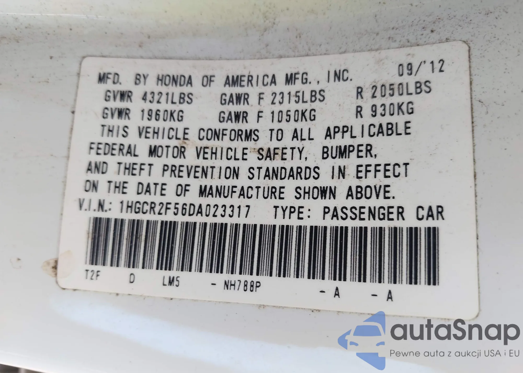 • VIN 2HKRW5H3XHH400051