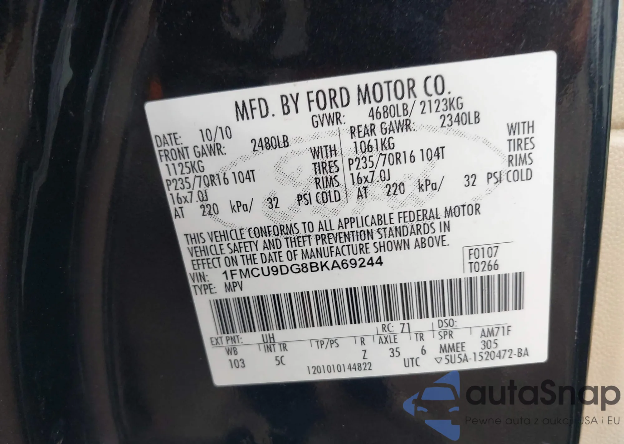 • VIN 1FMCU9DG8BKA69244