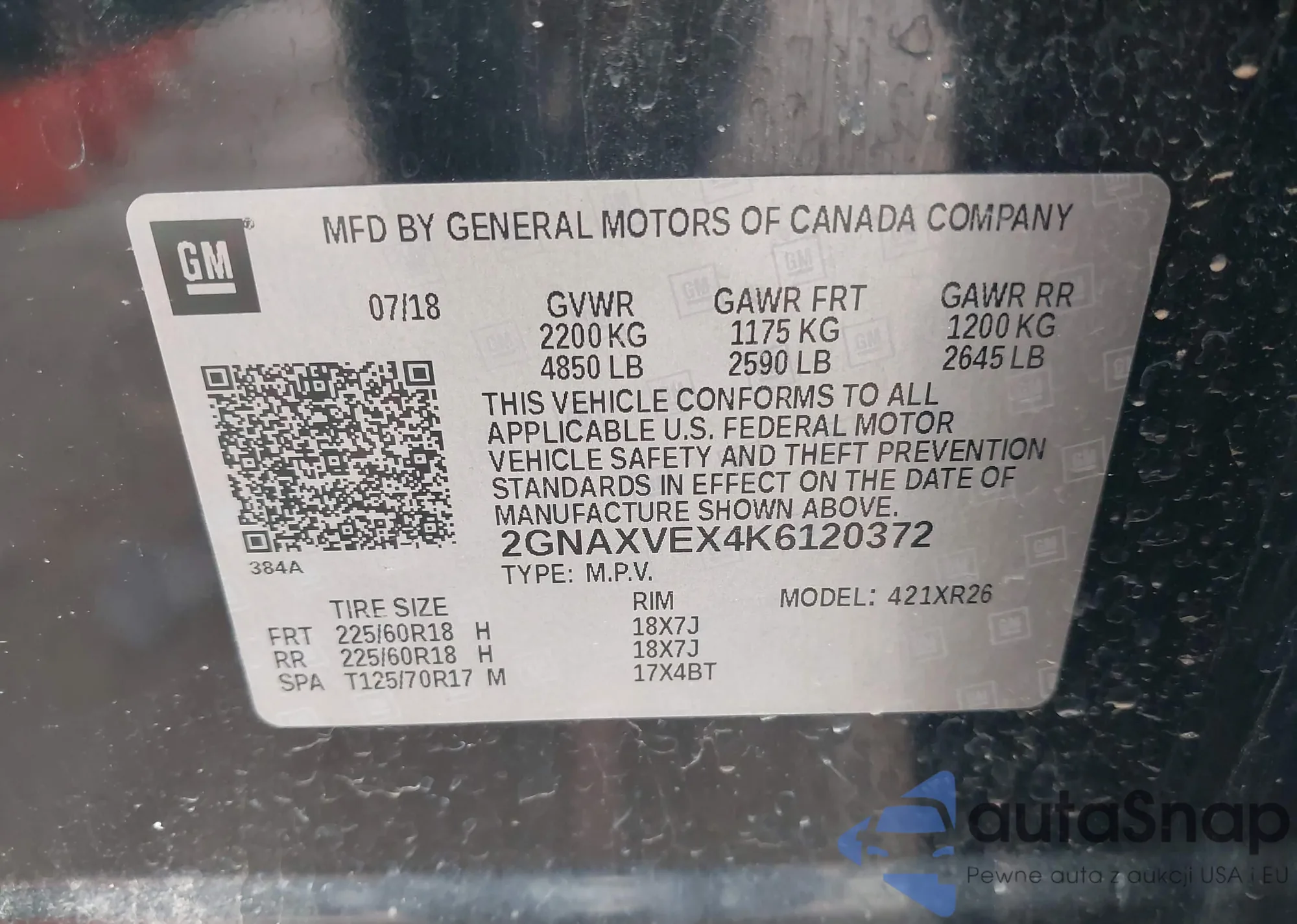• VIN 2GNAXVEX4K6120372