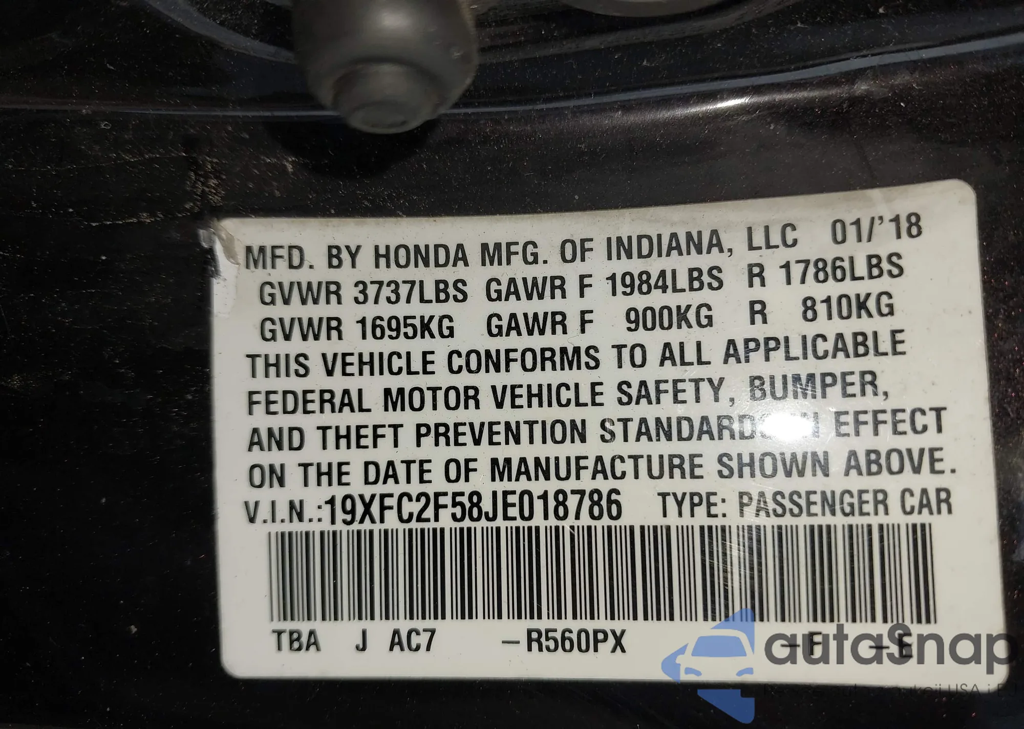 • VIN 19XFC2F58JE018786