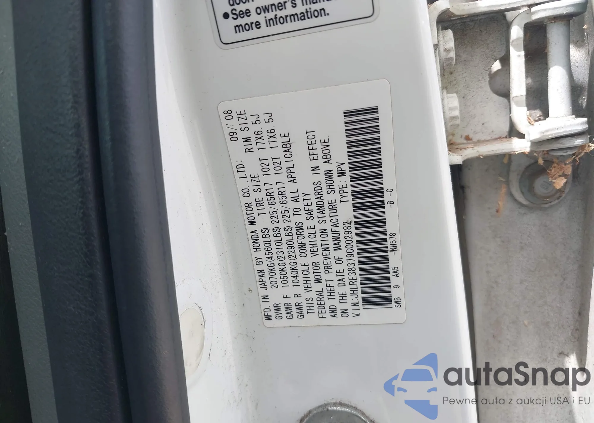 • VIN JHLRE38379C002982