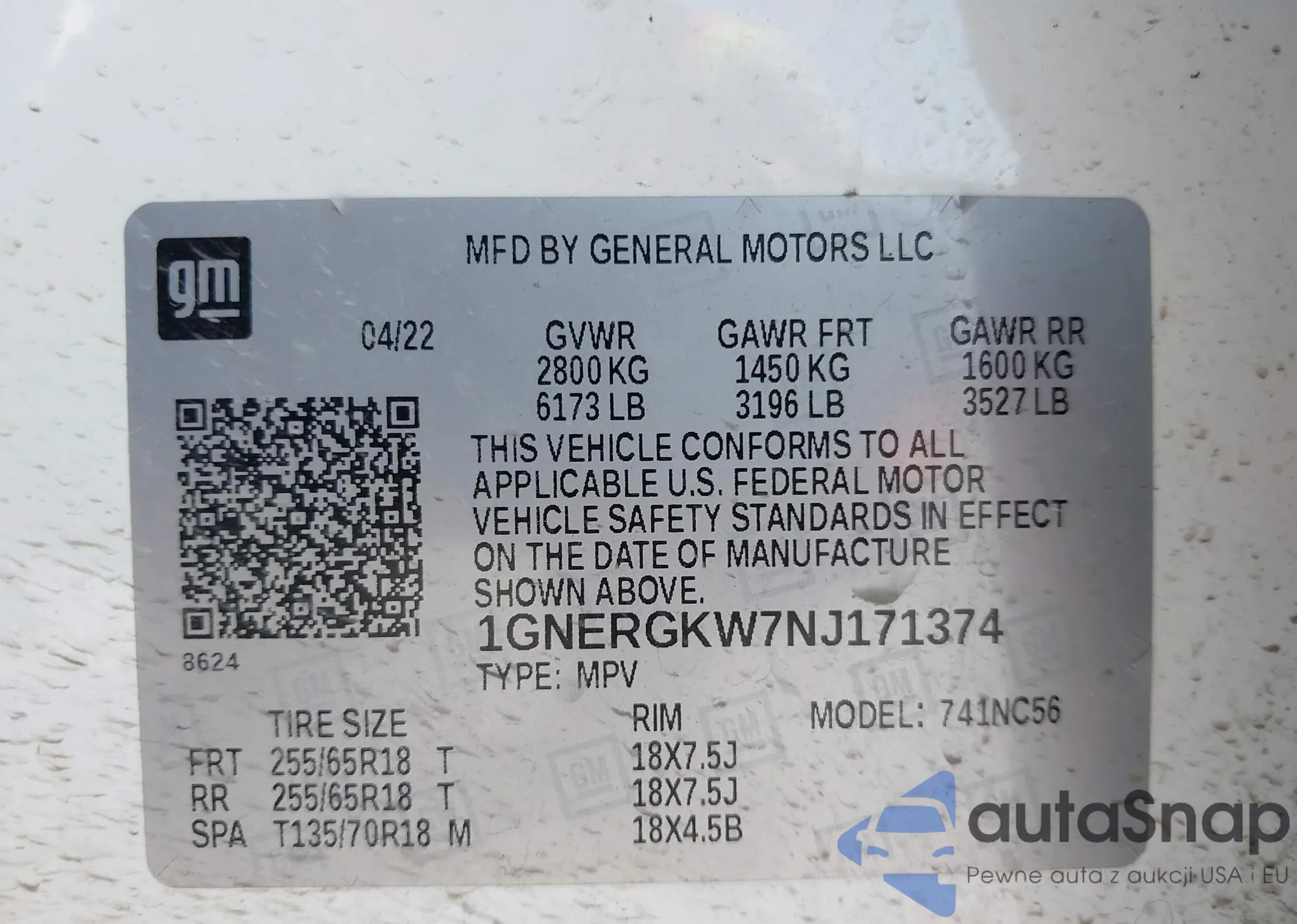 LOT: 42911377 VIN: 1GNERGKW7NJ171374