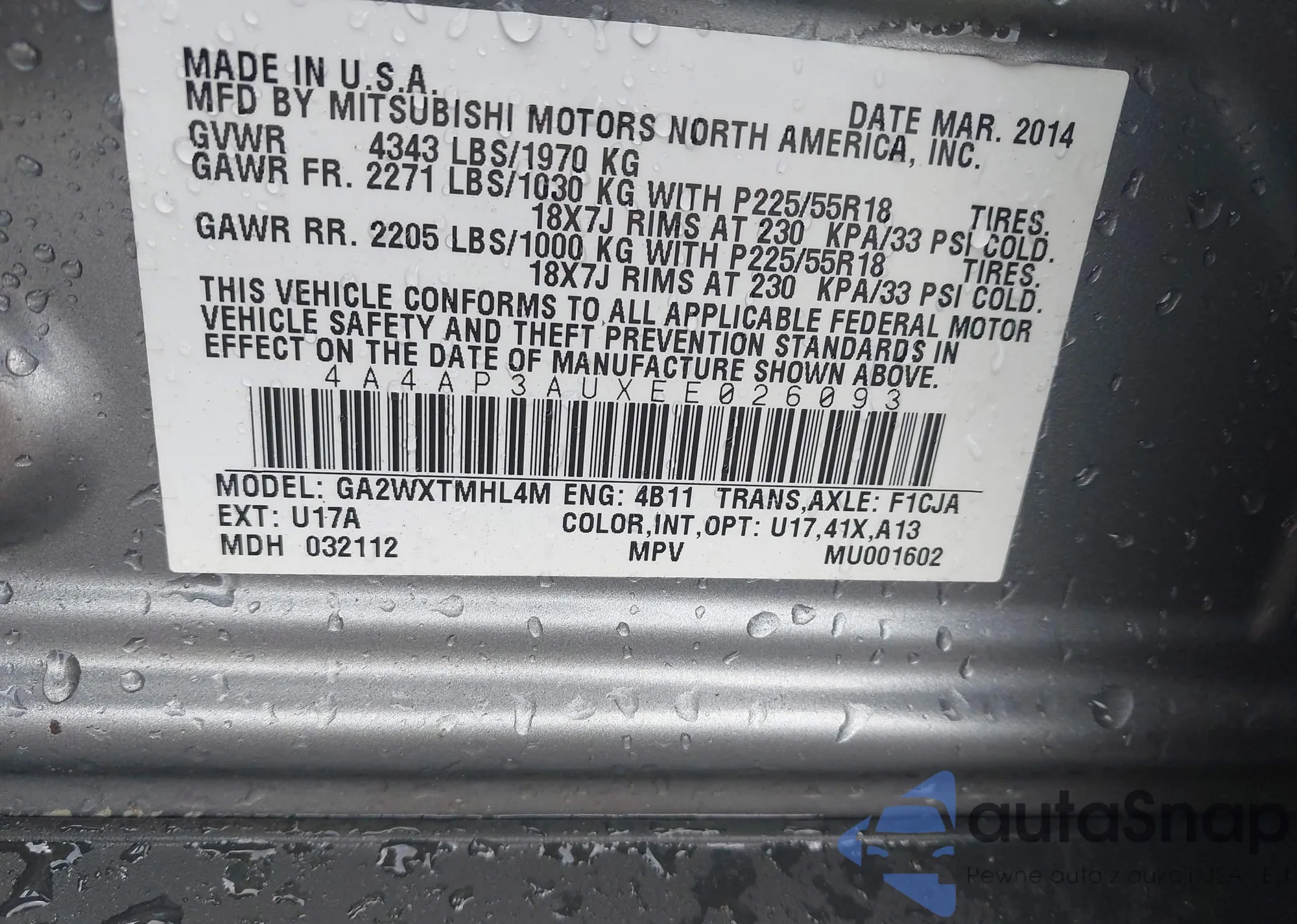 • VIN WAUD2AFR6GA000996