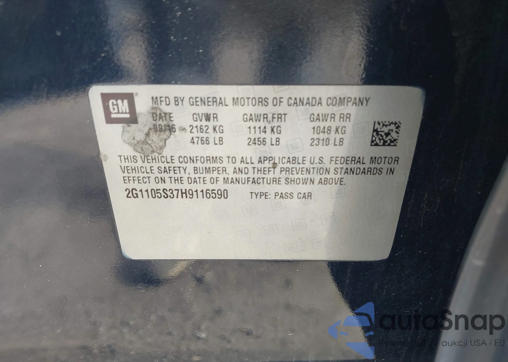 • VIN 2G1105S37H9116590