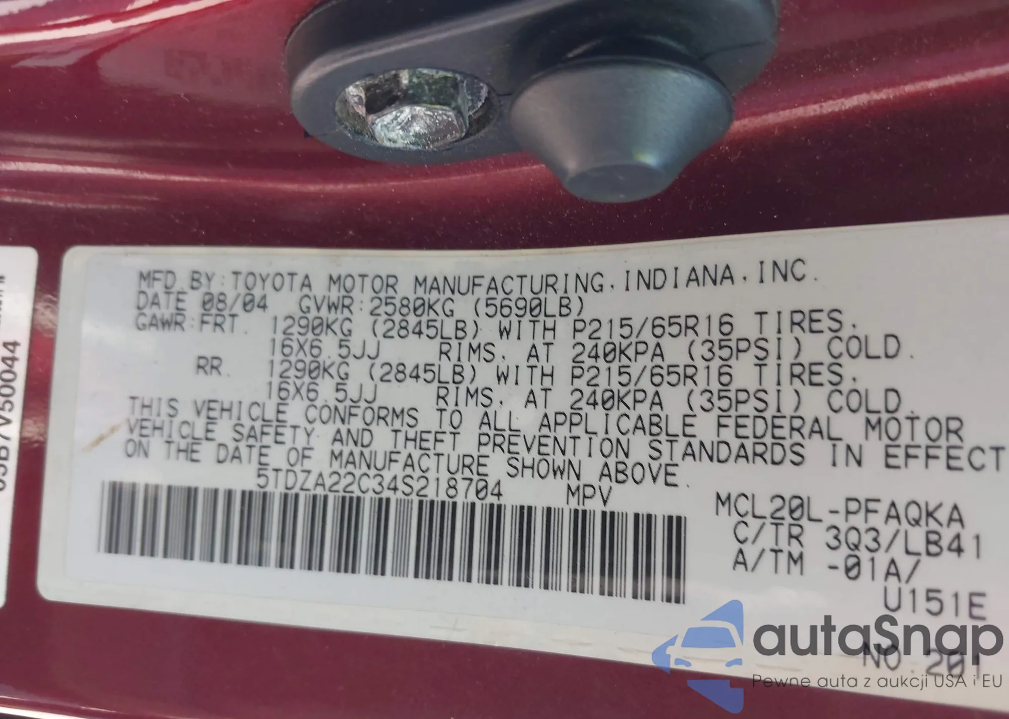 • VIN 4T1BF28B53U315541