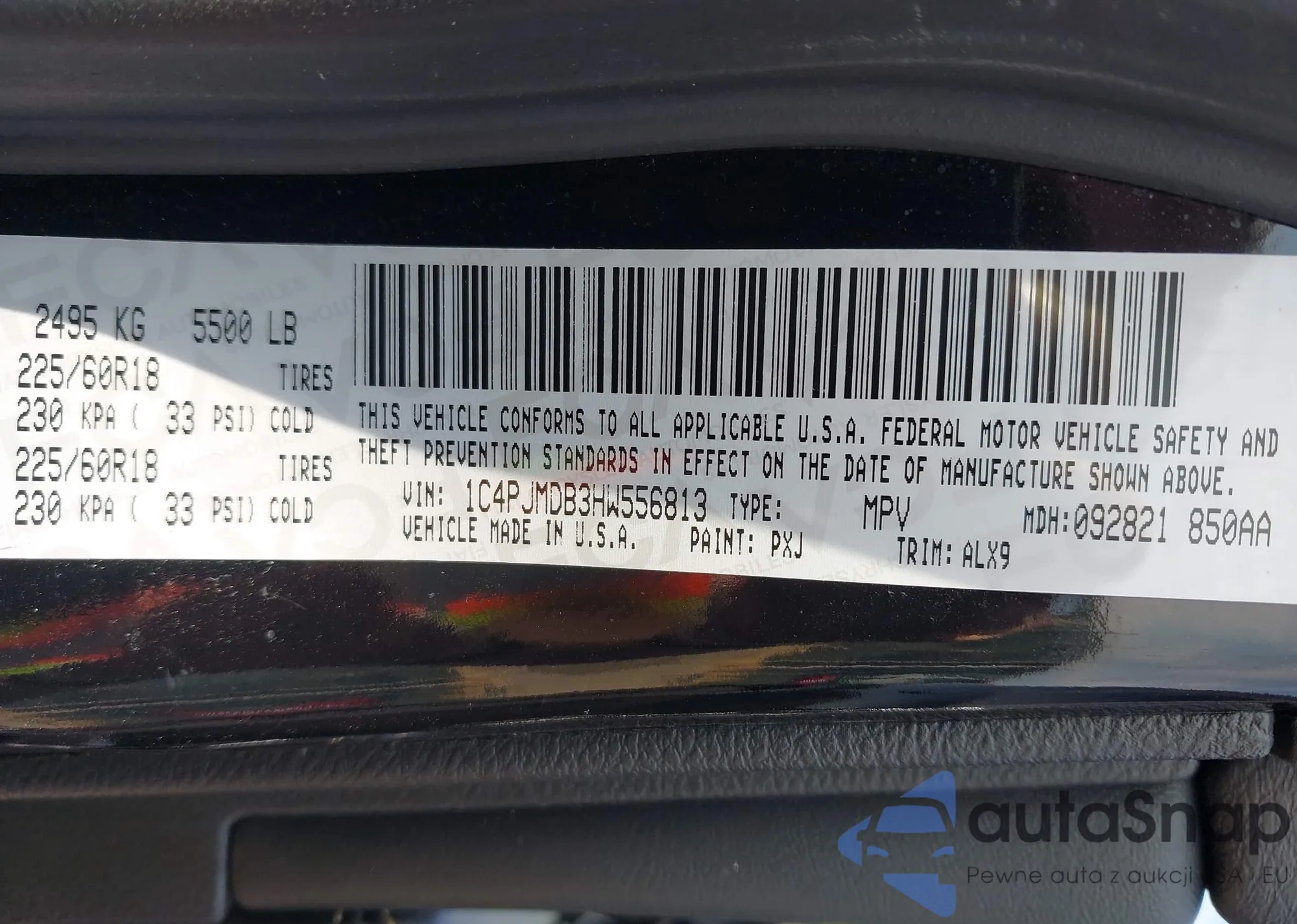 LOT: 43213547 VIN: 1C4PJMDB3HW556813