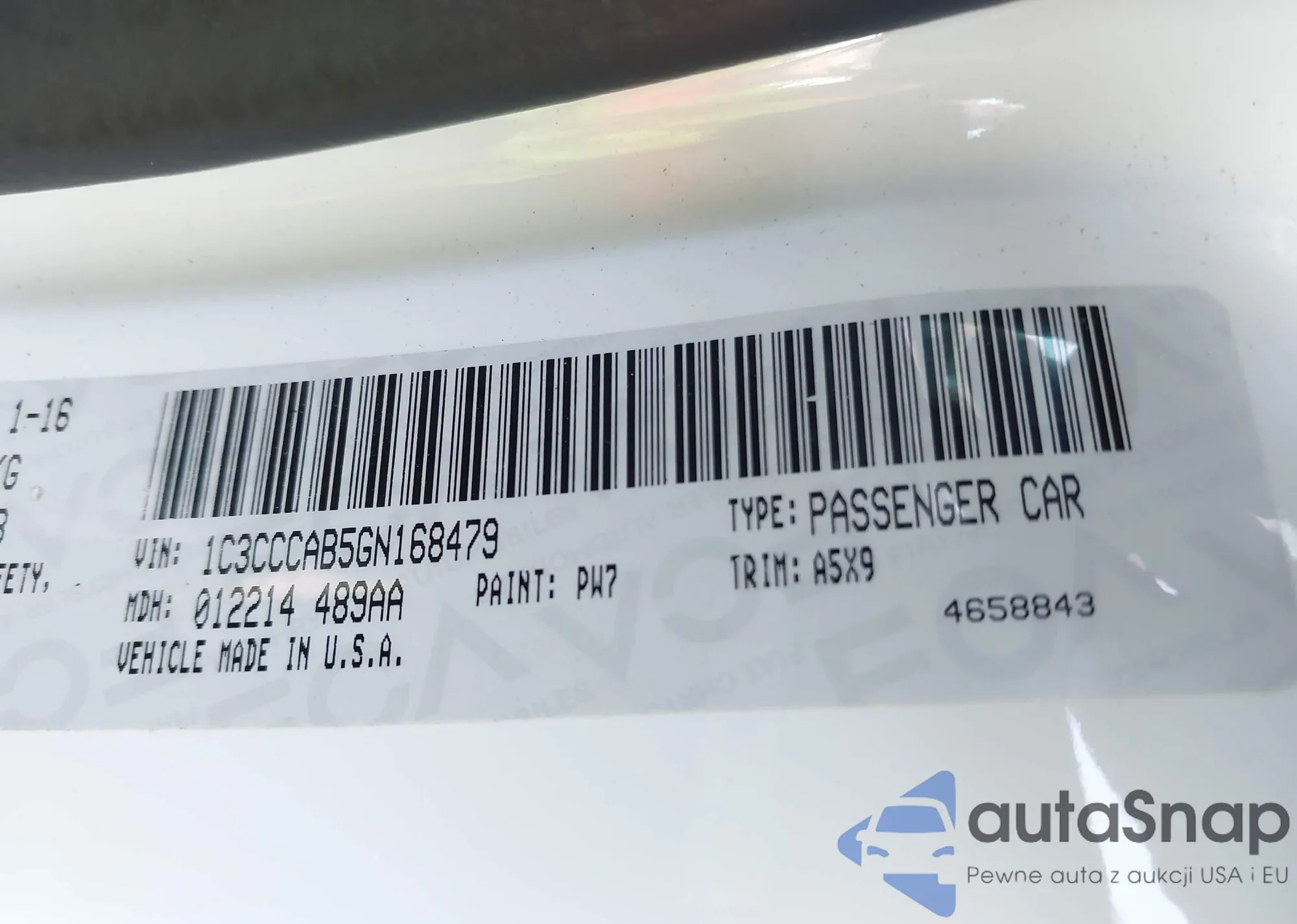LOT: 43244157 VIN: 1C3CCCAB5GN168479