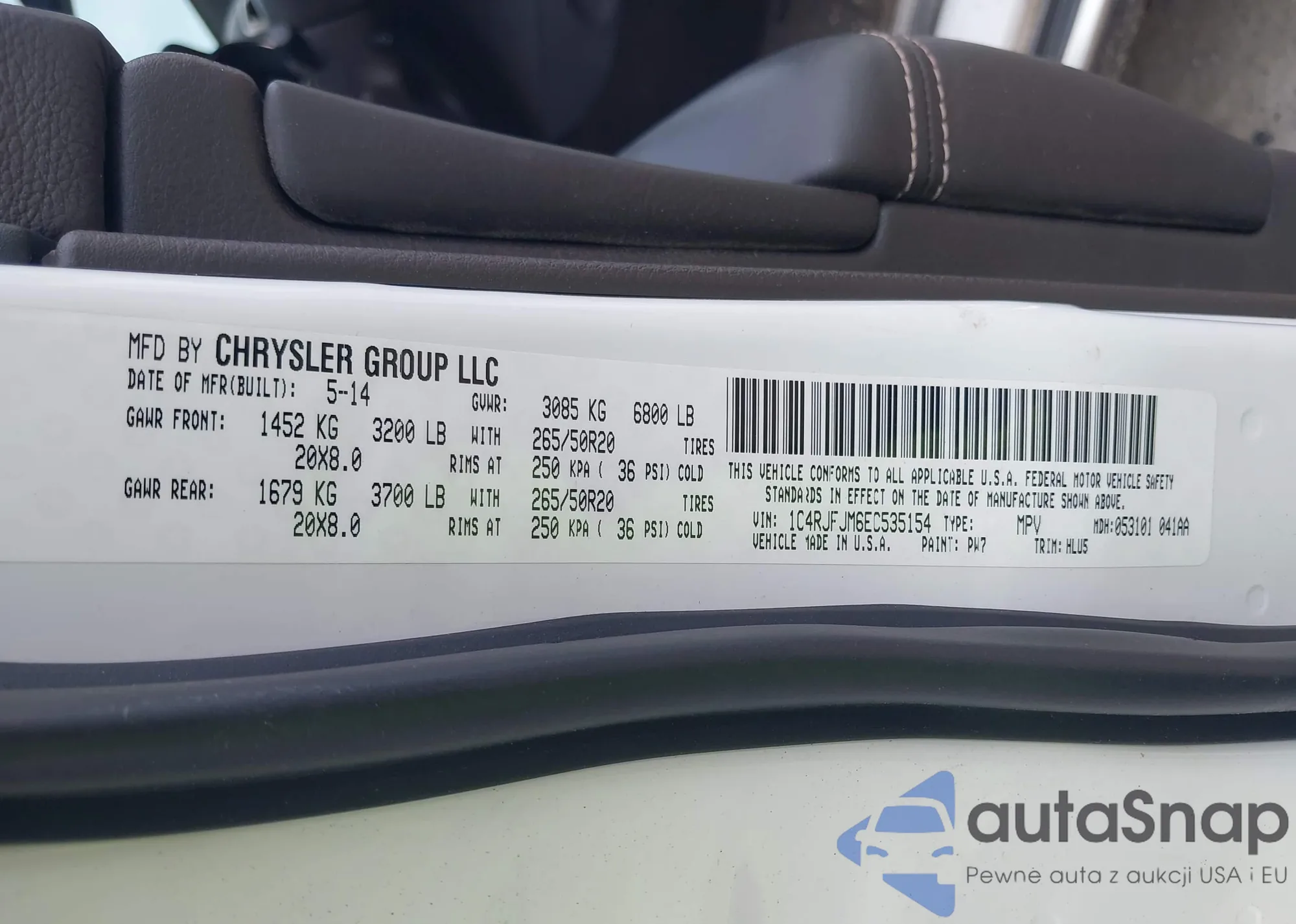 • VIN 1C4RJFJM6EC535154