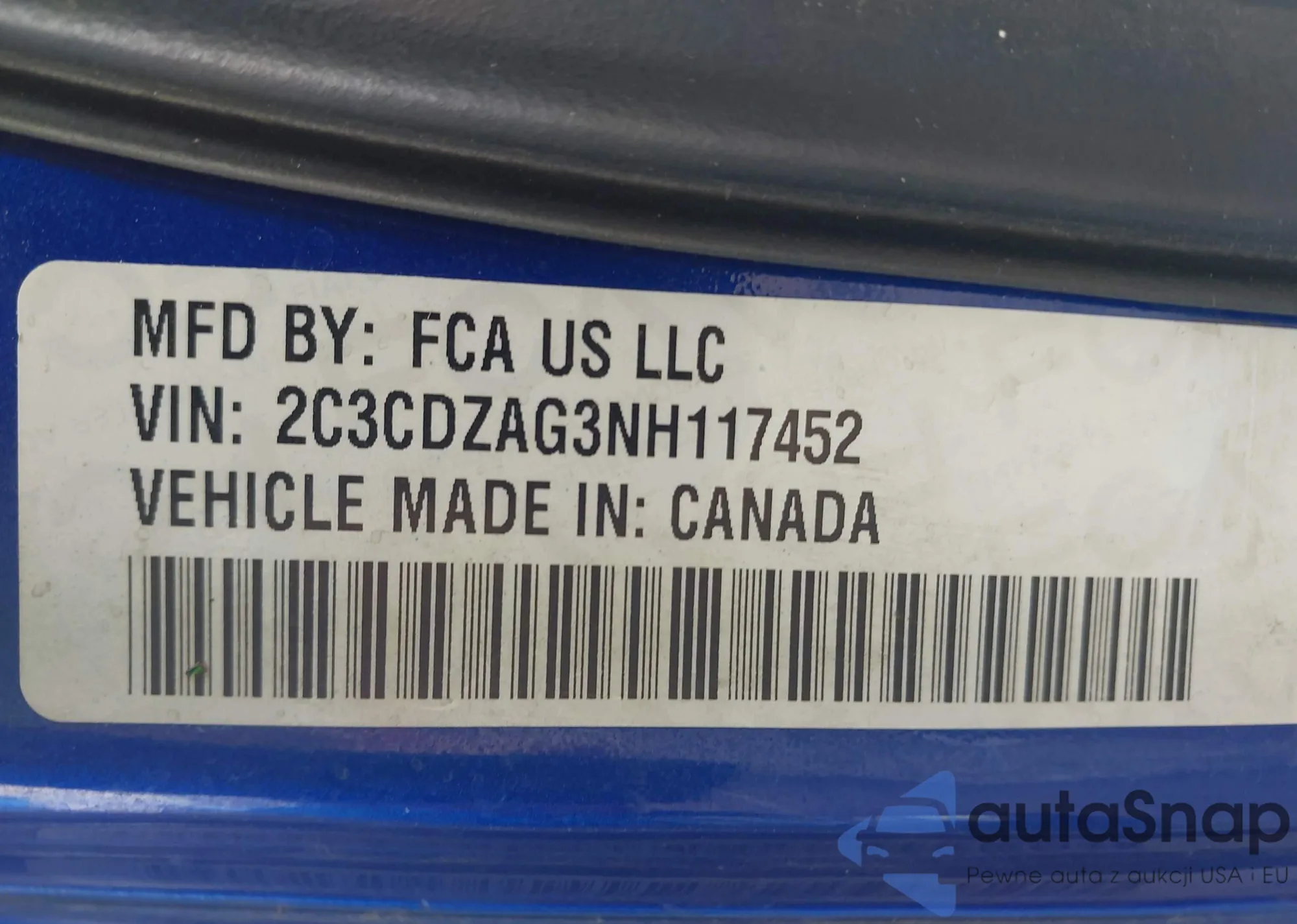 LOT: 42903796 VIN: 2C3CDZAG3NH117452
