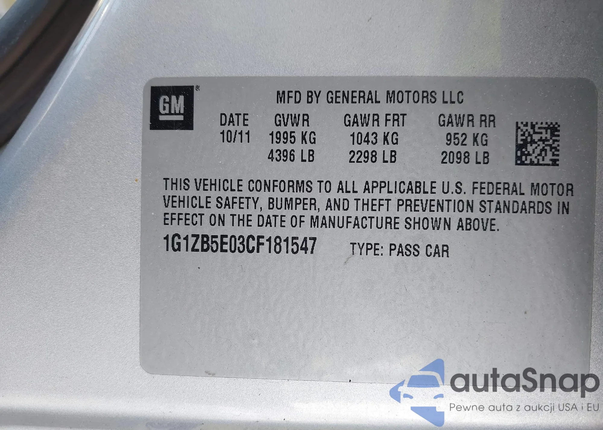 • VIN 1G1ZB5E03CF181547