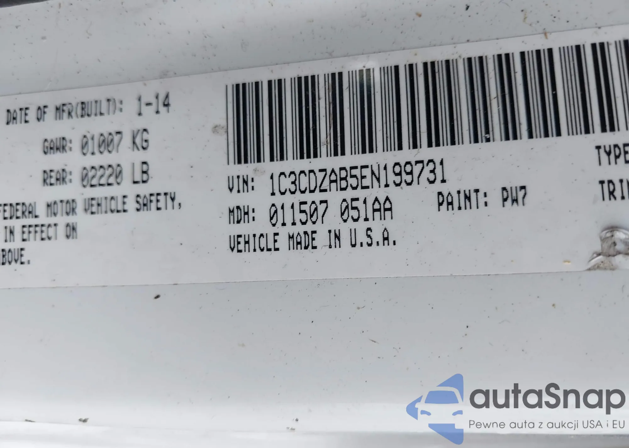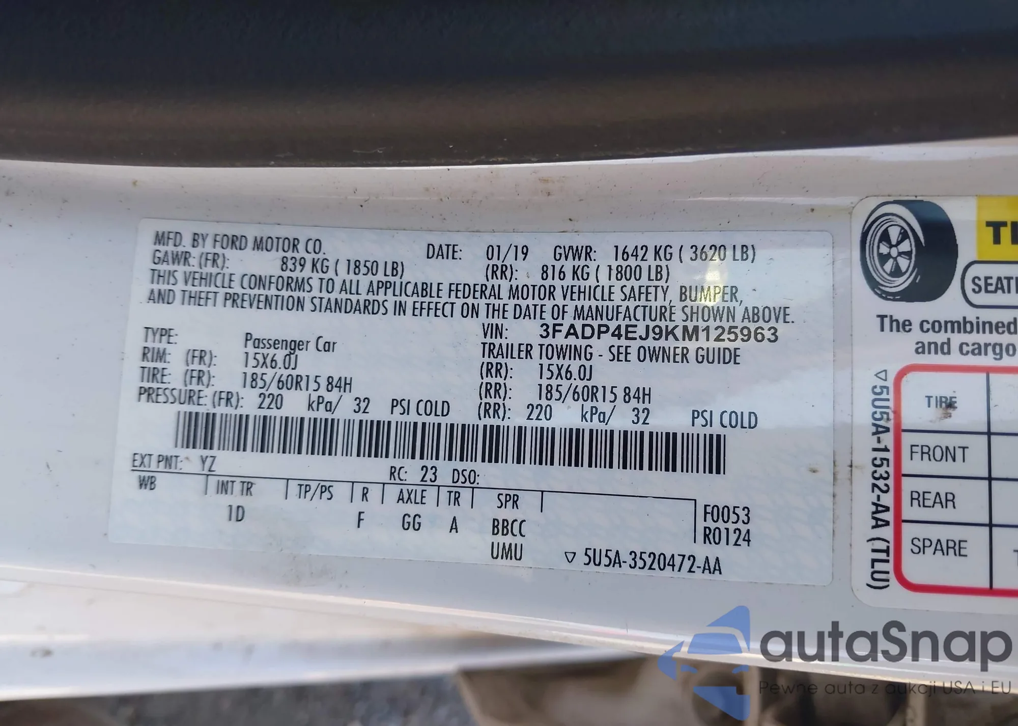 • VIN 3FADP4EJ9KM125963