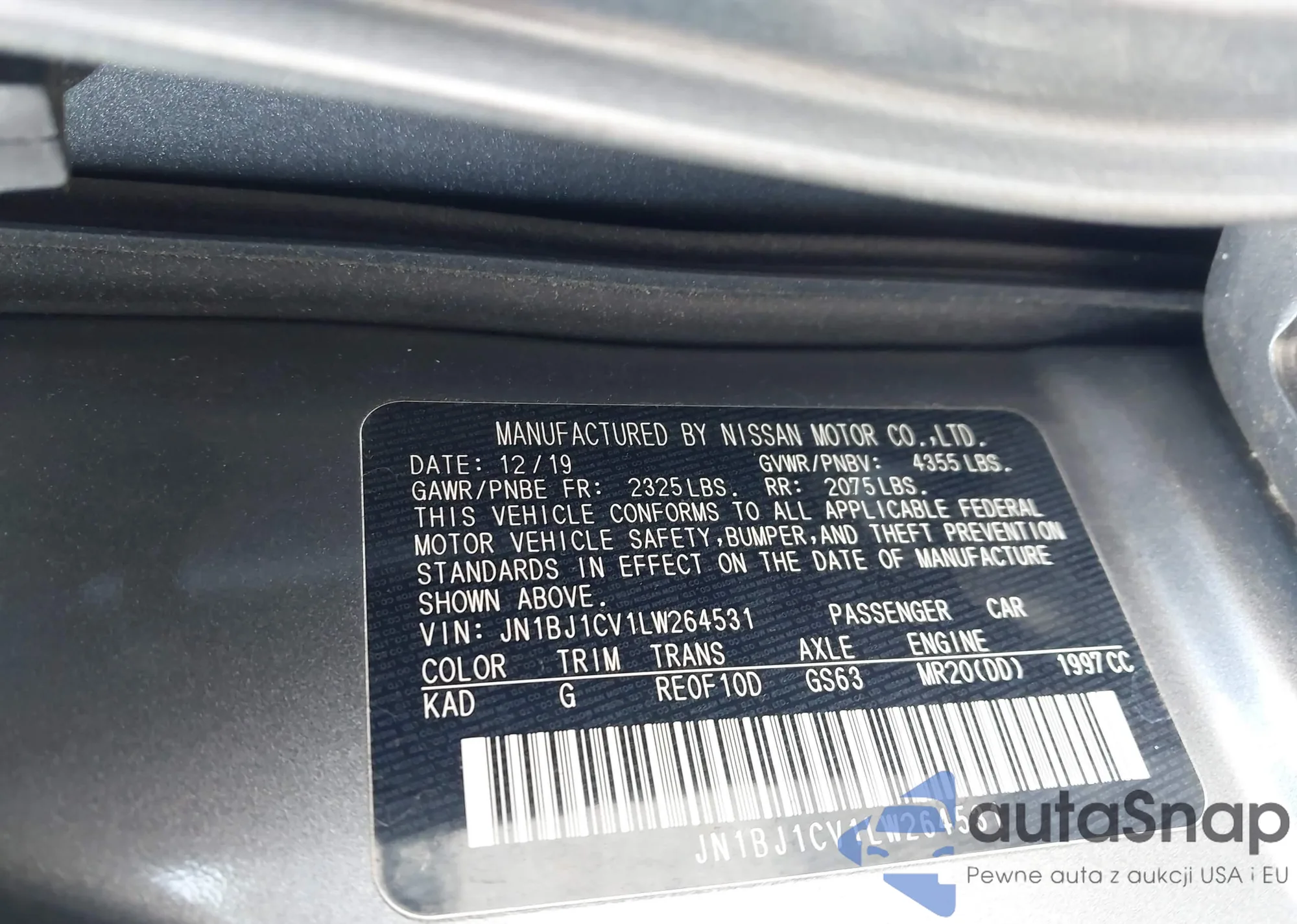 LOT: 42714799 VIN: JN8AT2MV5LW130195