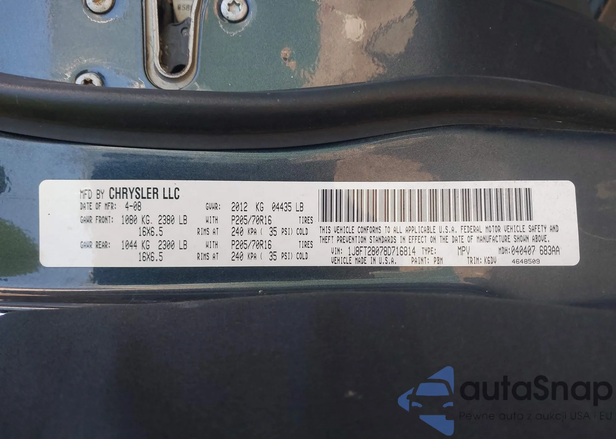 • VIN 1J8FT28078D716814