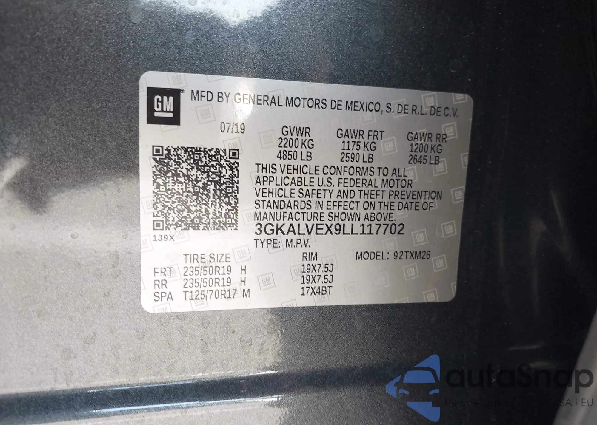 • VIN 3GKALVEX9LL117702