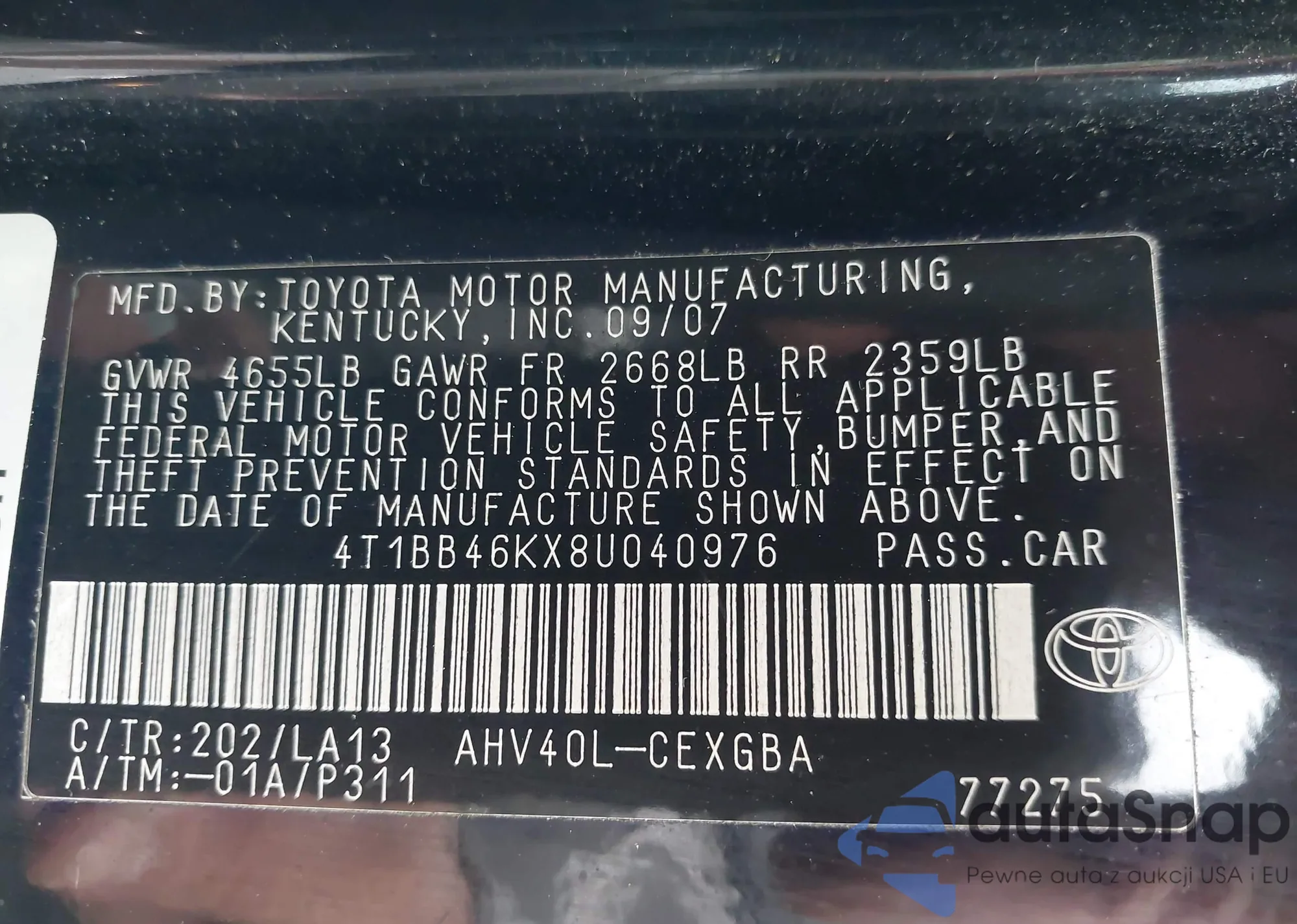 • VIN 4T1BB46KX8U040976