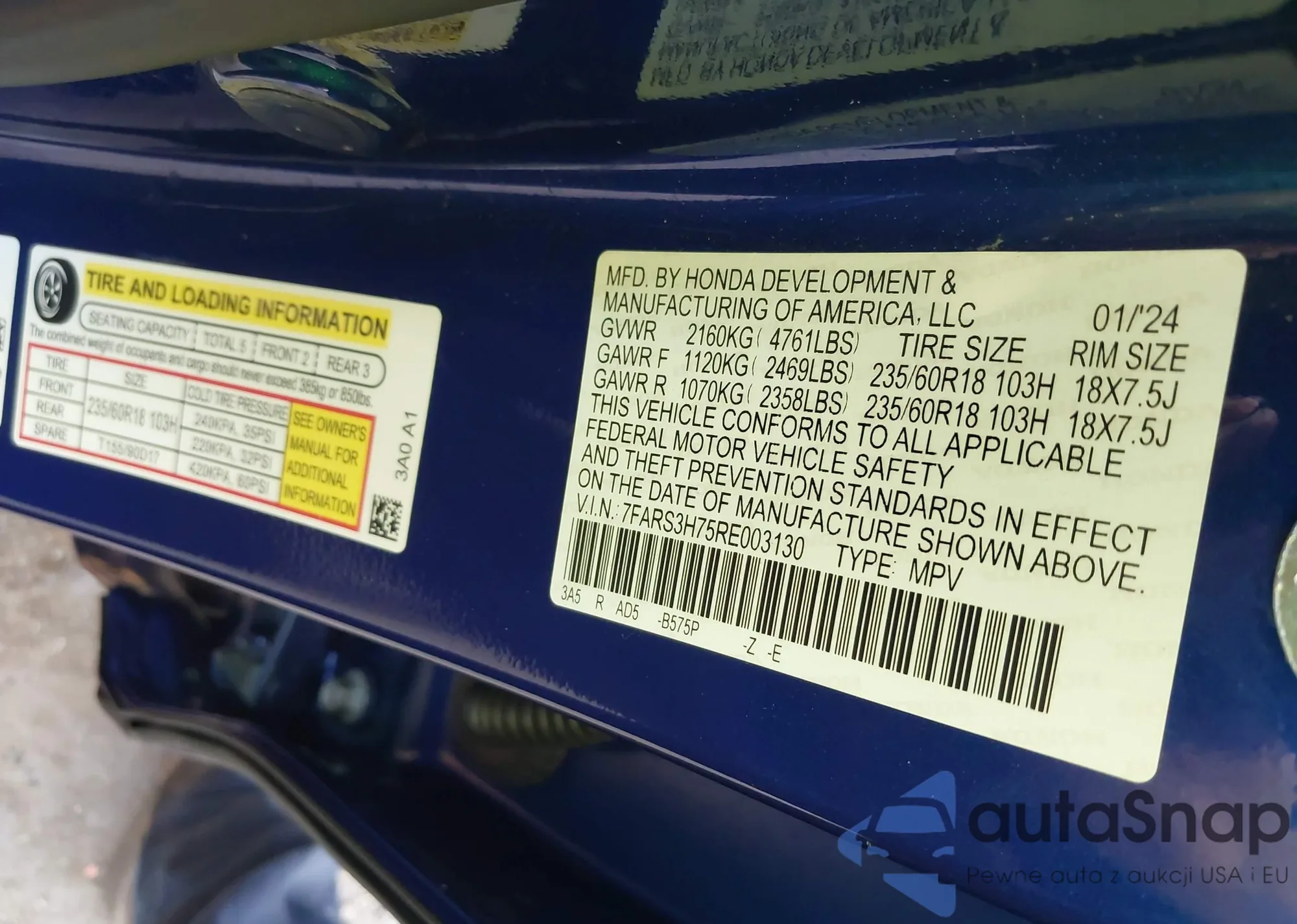 LOT: 43076891 VIN: 7FARS3H75RE003130