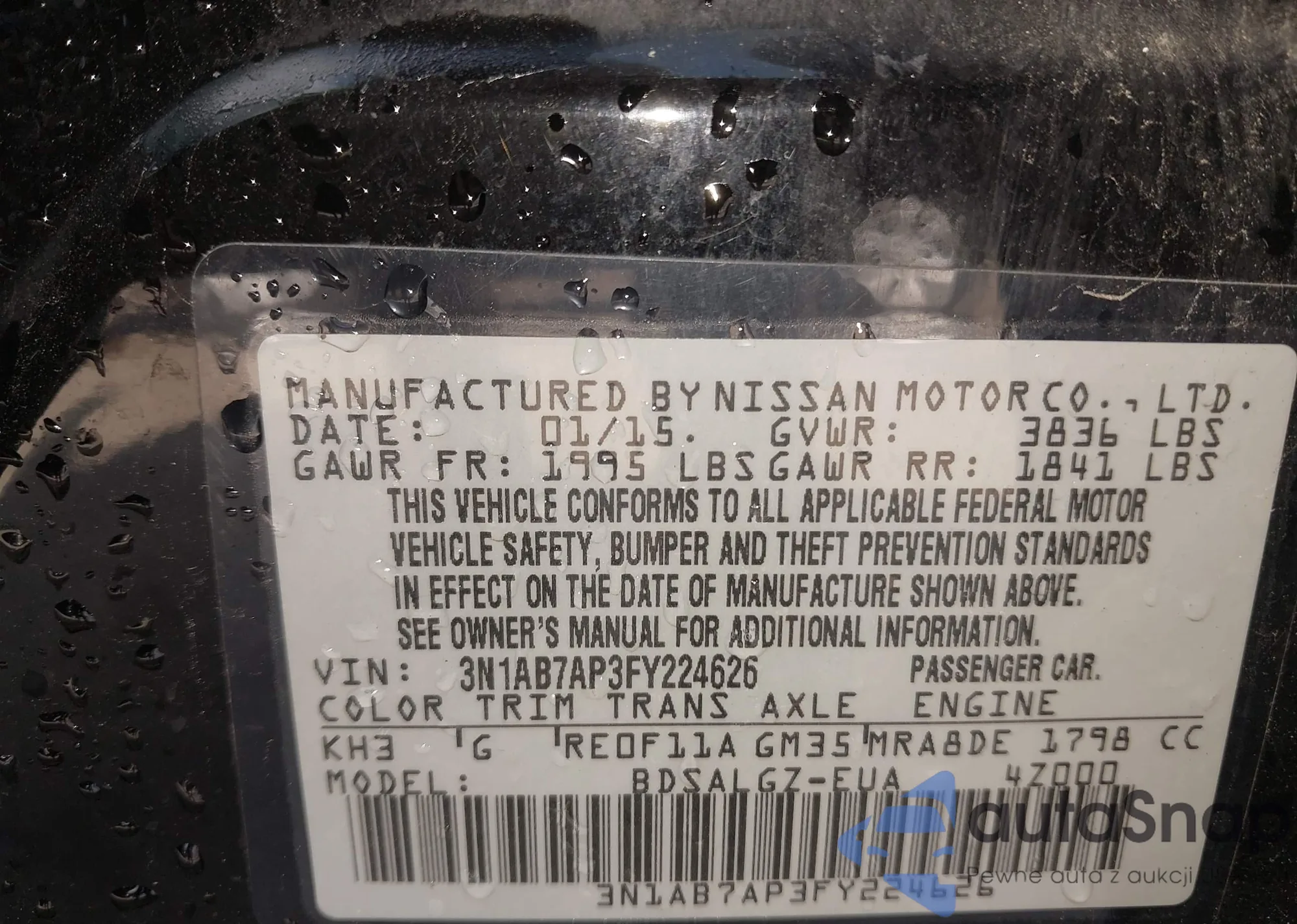 • VIN 3N1AB7AP3FY224626