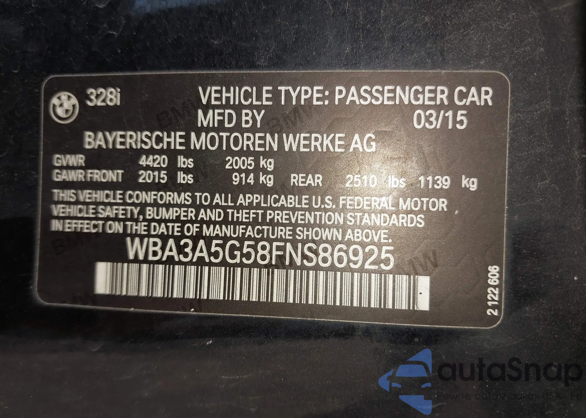 • VIN WBA3A5G58FNS86925