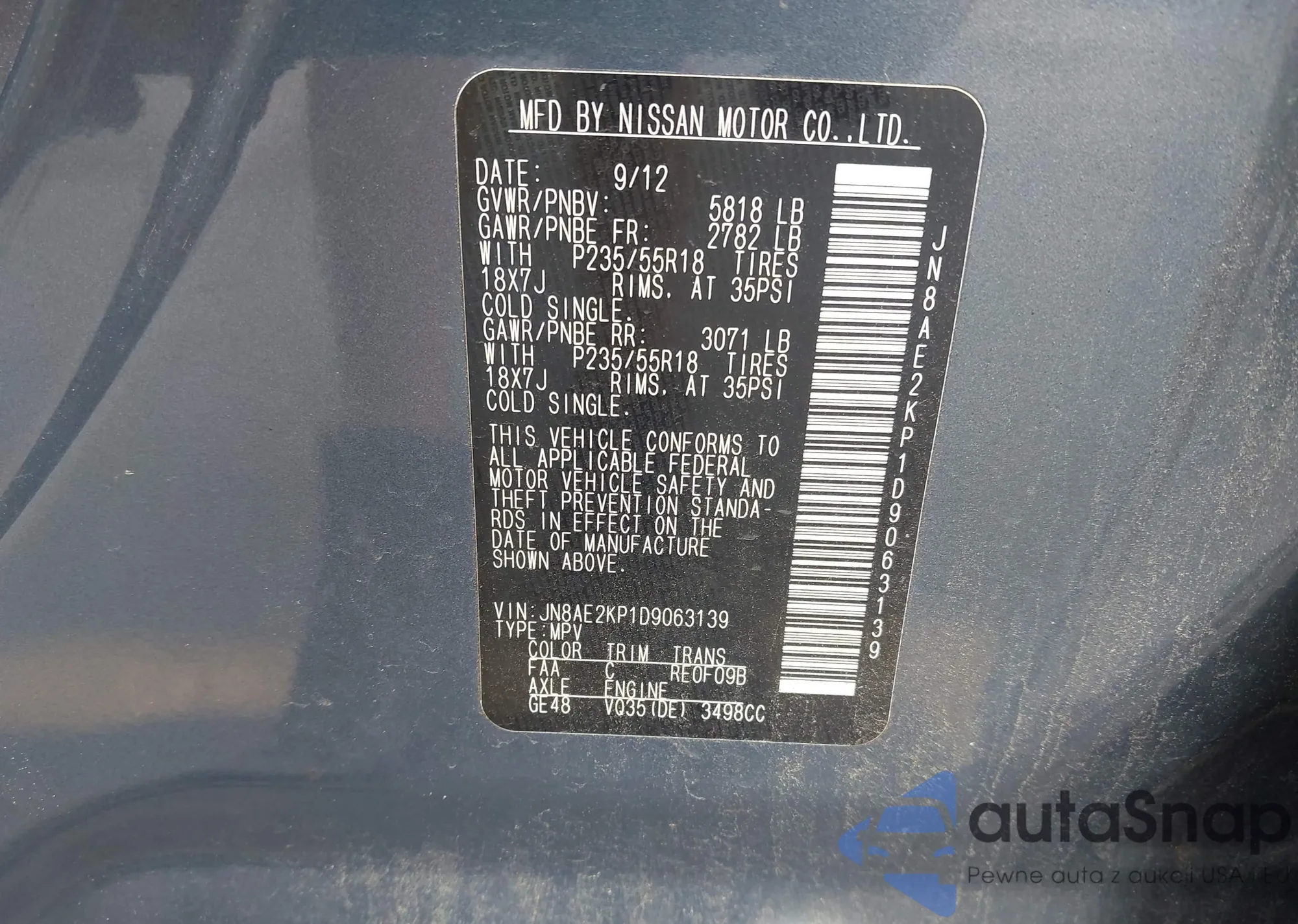 LOT: 42347747 VIN: JN8AE2KP1D9063139