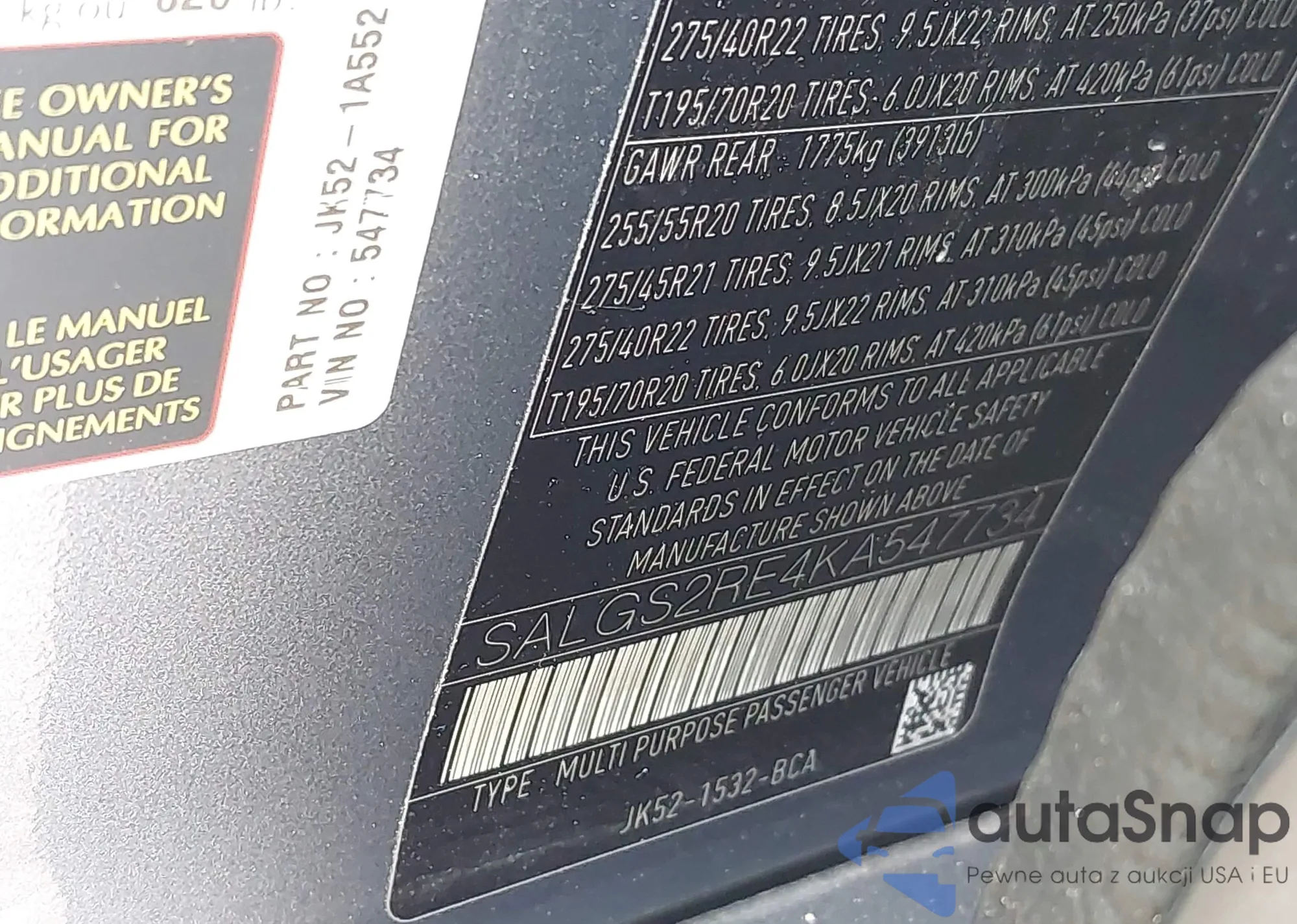 LOT: 43243877 VIN: SALGS2RE4KA547734