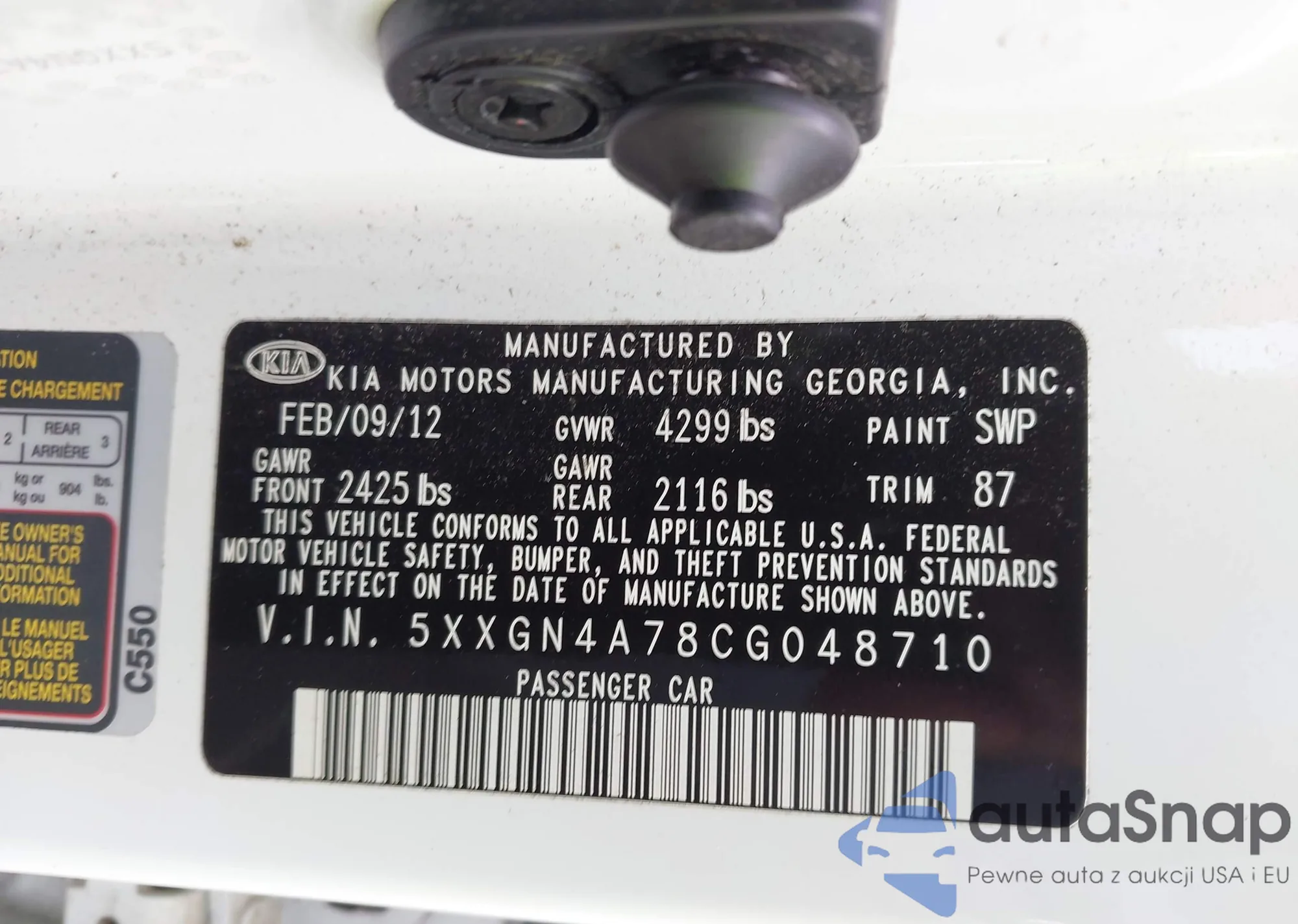 • VIN 5XXGN4A78CG048710