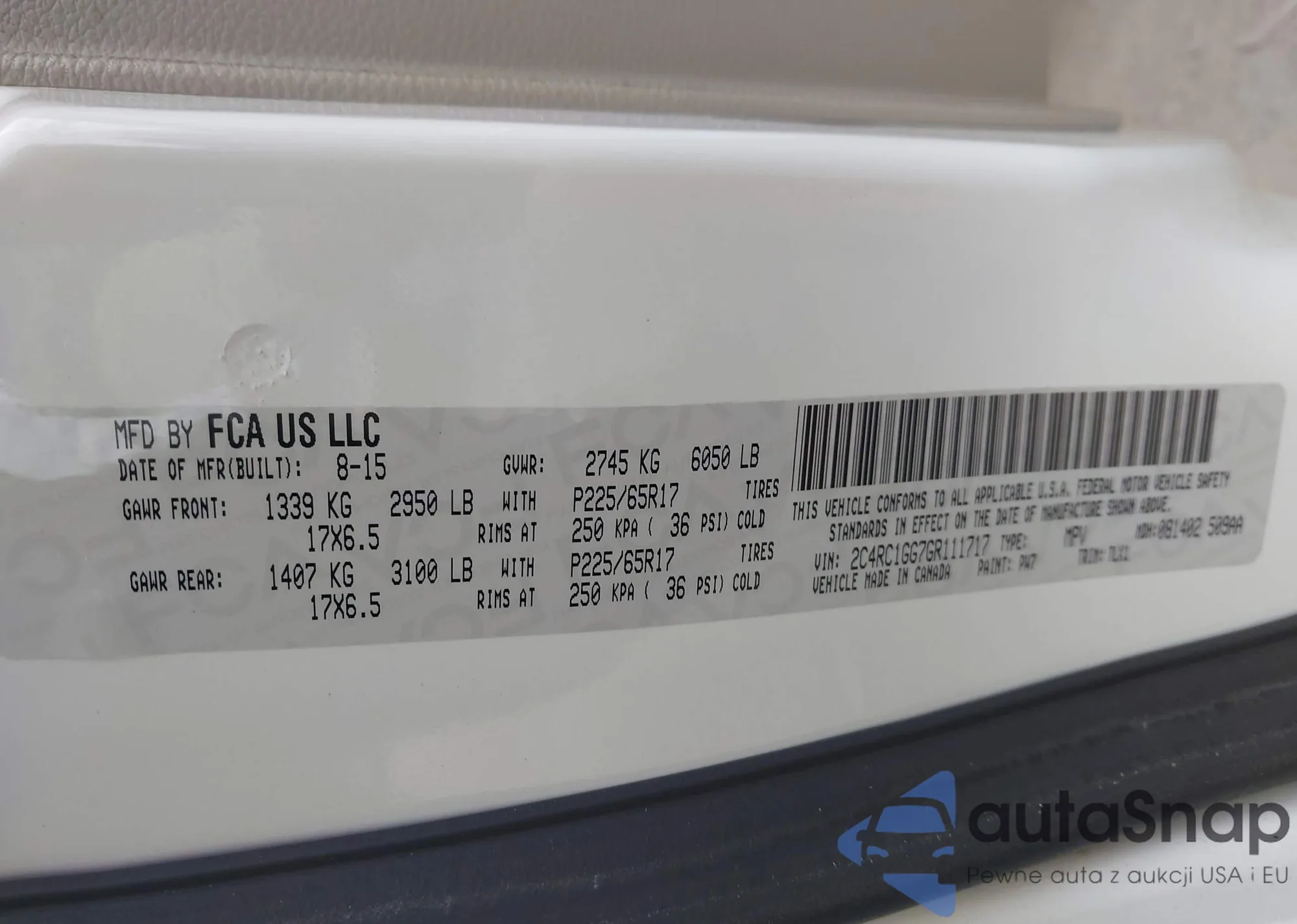 • VIN 2C4RC1GG7GR111717