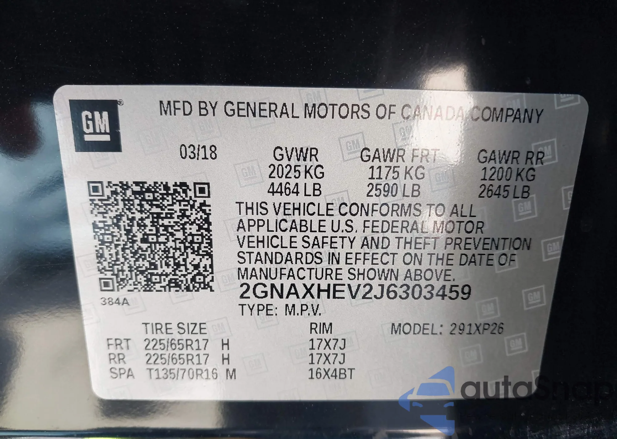 • VIN 2GNAXHEV2J6303459