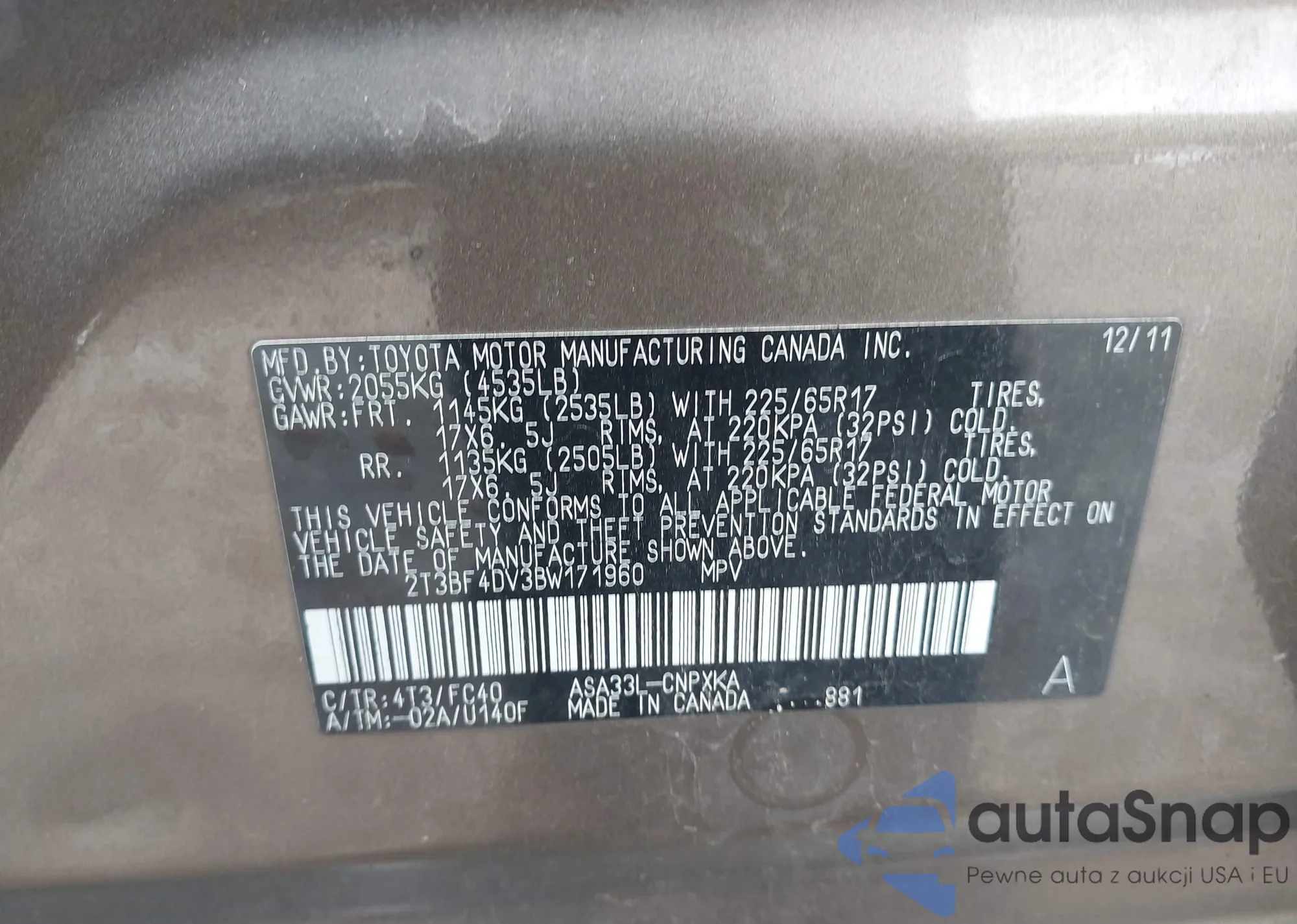 • VIN JN8AS5MV7BW297516