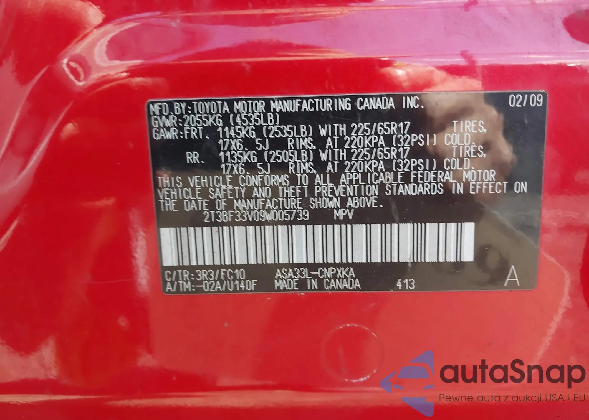 • VIN 1HGCP2F89AA132236