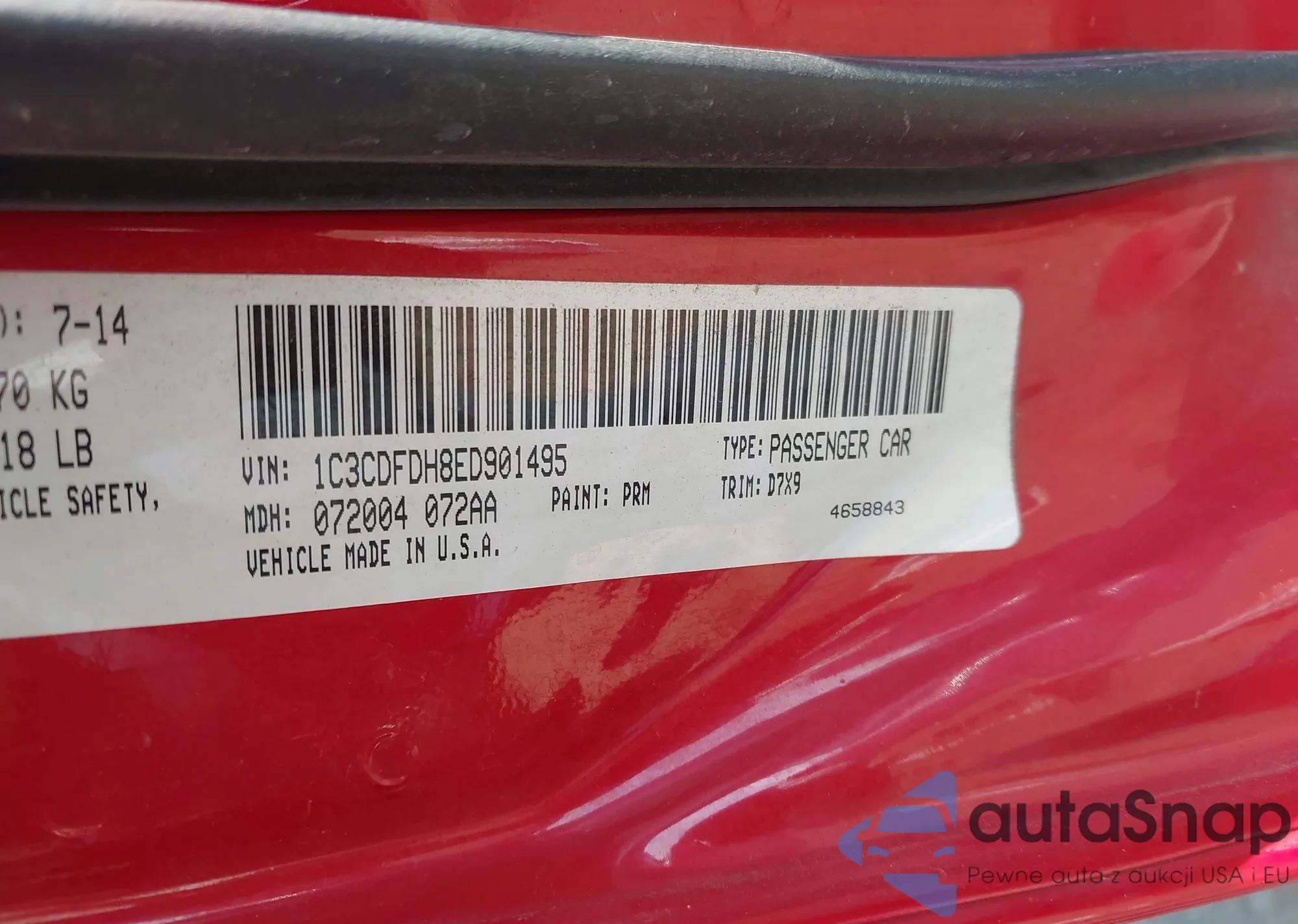 • VIN 1C3CDFDH8ED901495
