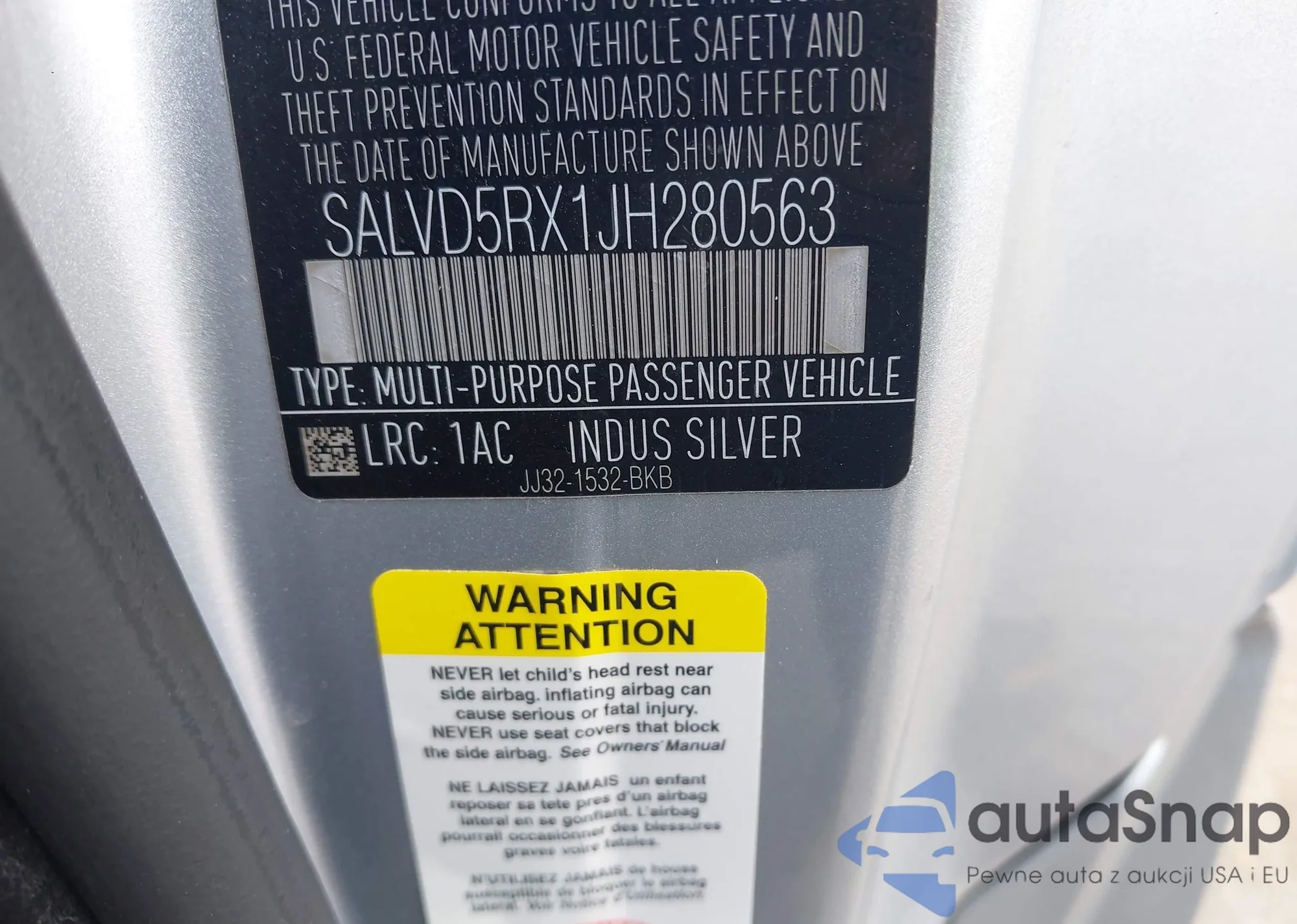 • VIN SALVD5RX1JH280563