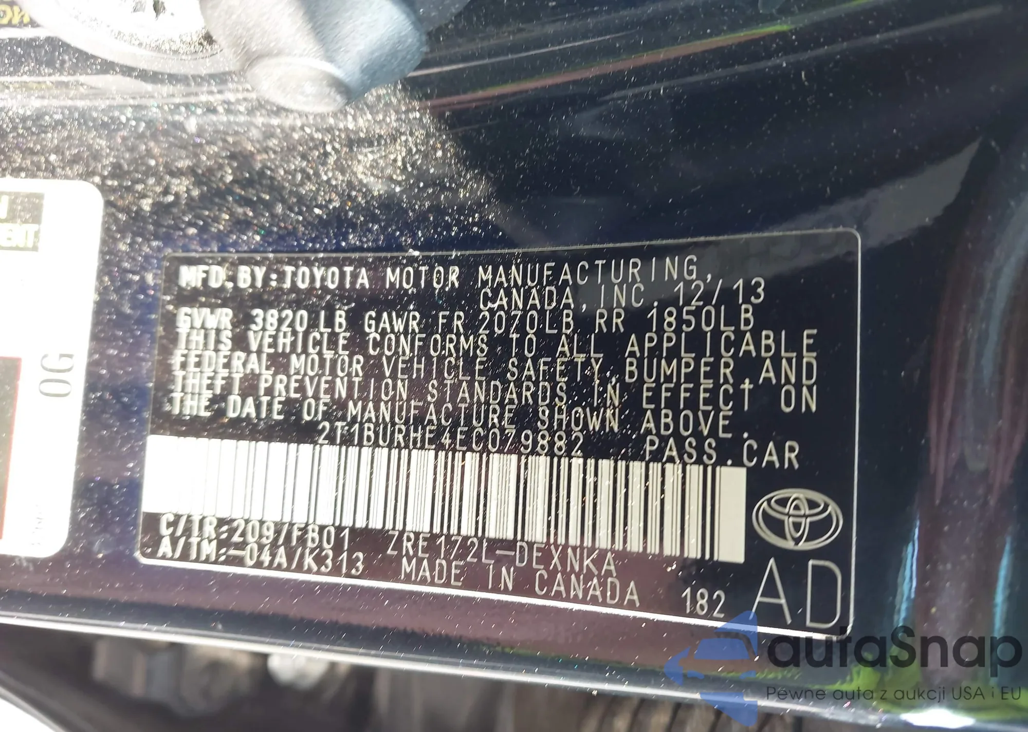 LOT: 43136575 VIN: 2T1BURHE4EC079882