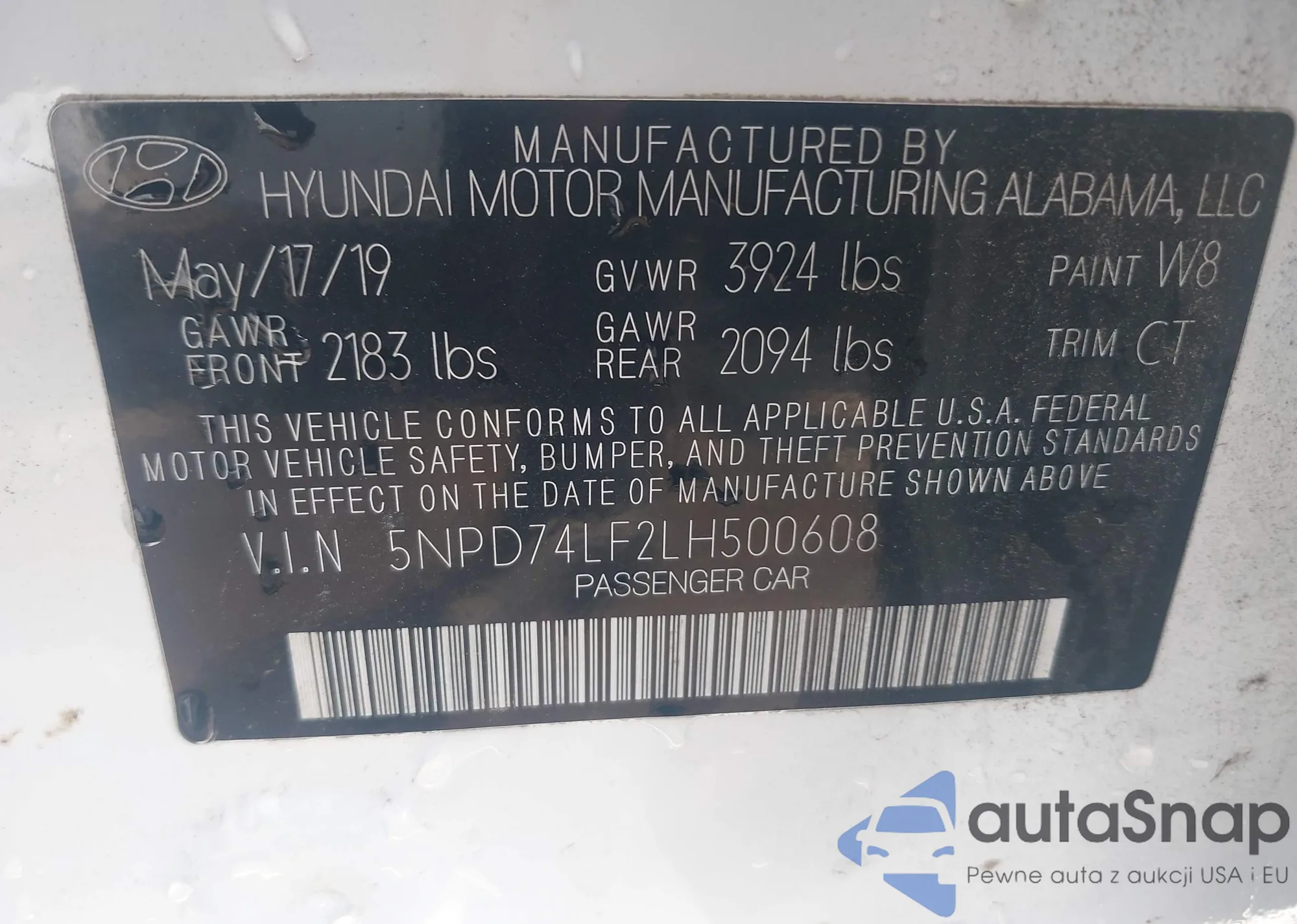 LOT: 43138852 VIN: 5NPD74LF2LH500608