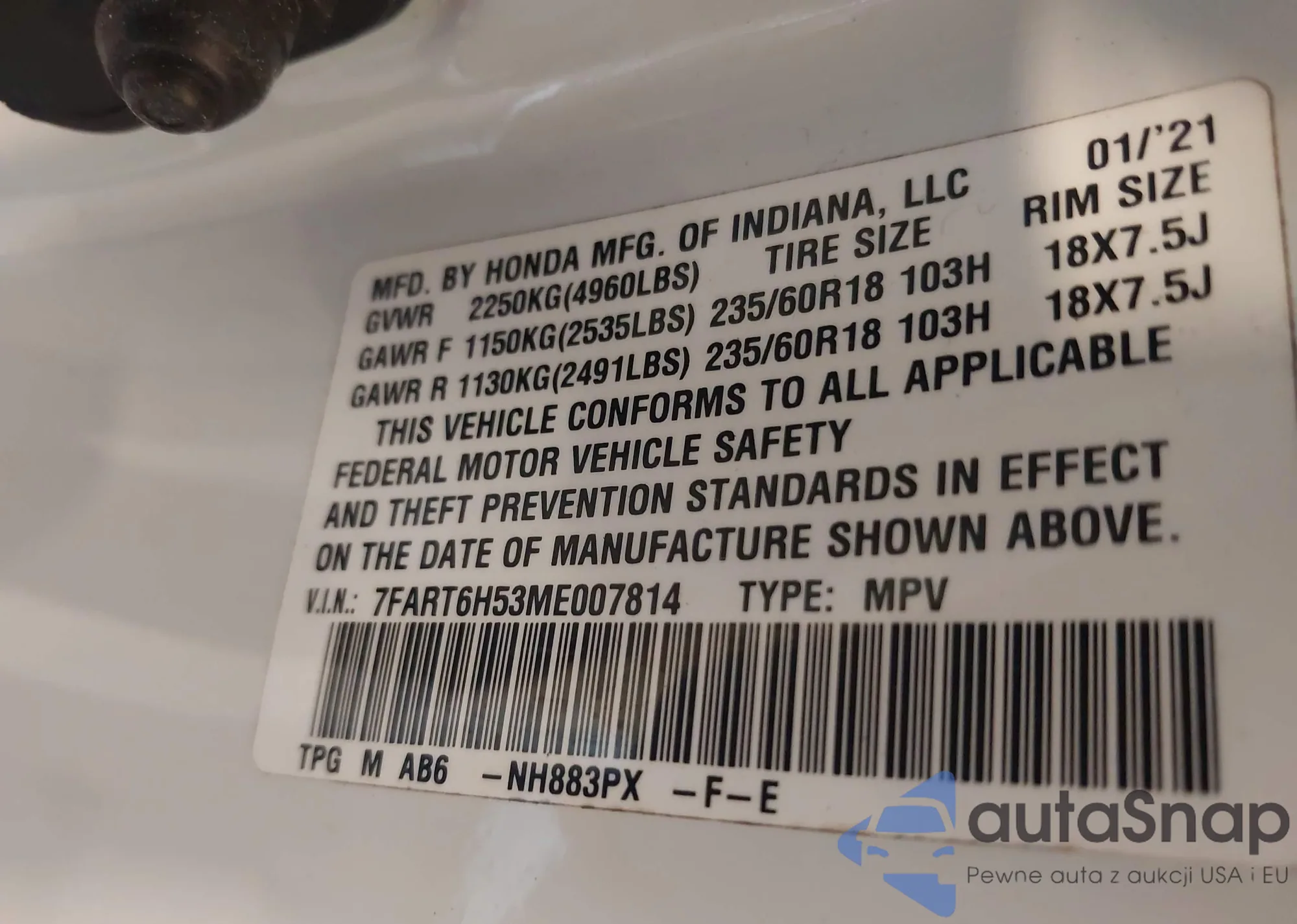 • VIN KL7CJNSM3NB542855