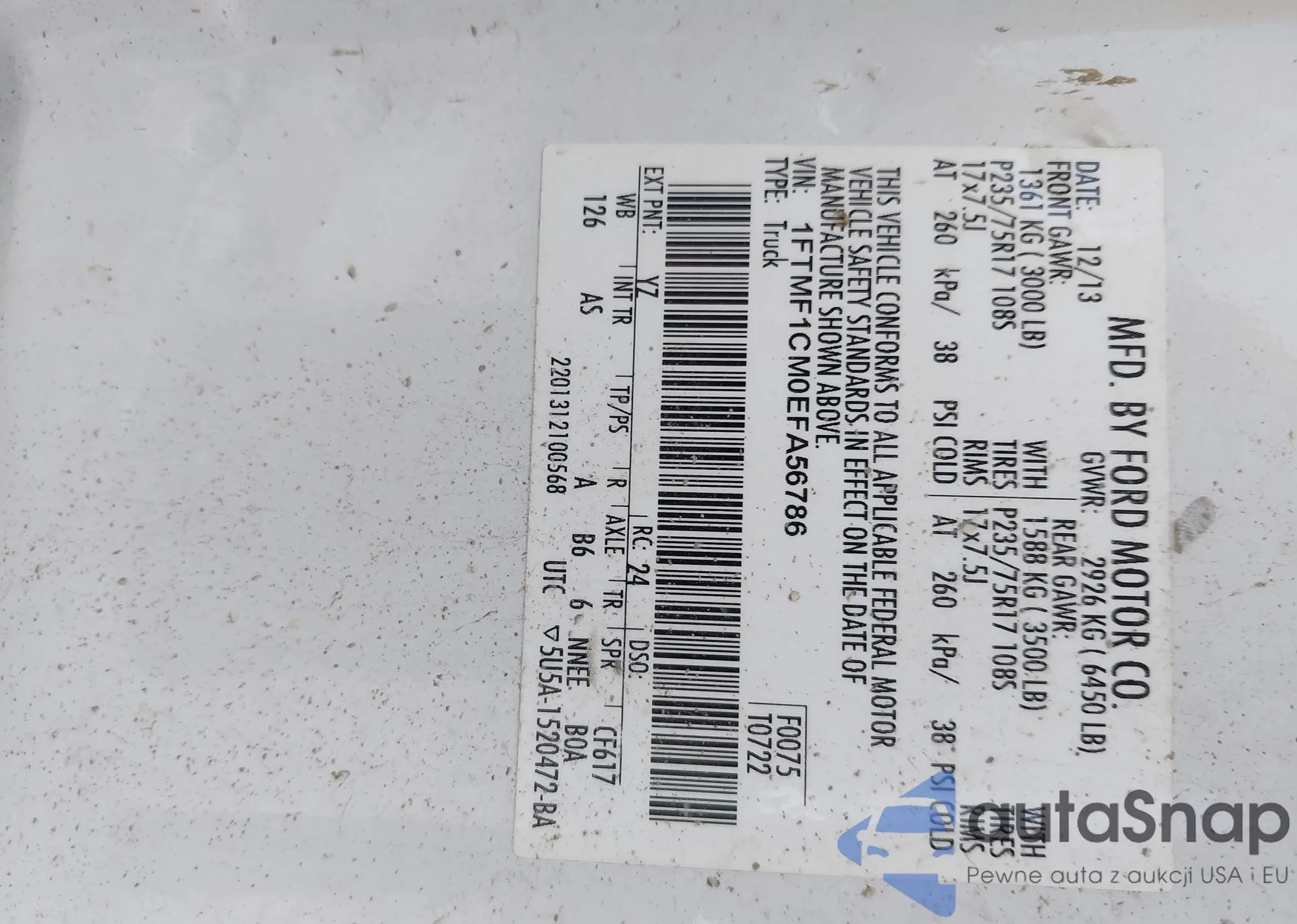 LOT: 43004942 VIN: 1FTMF1CM0EFA56786