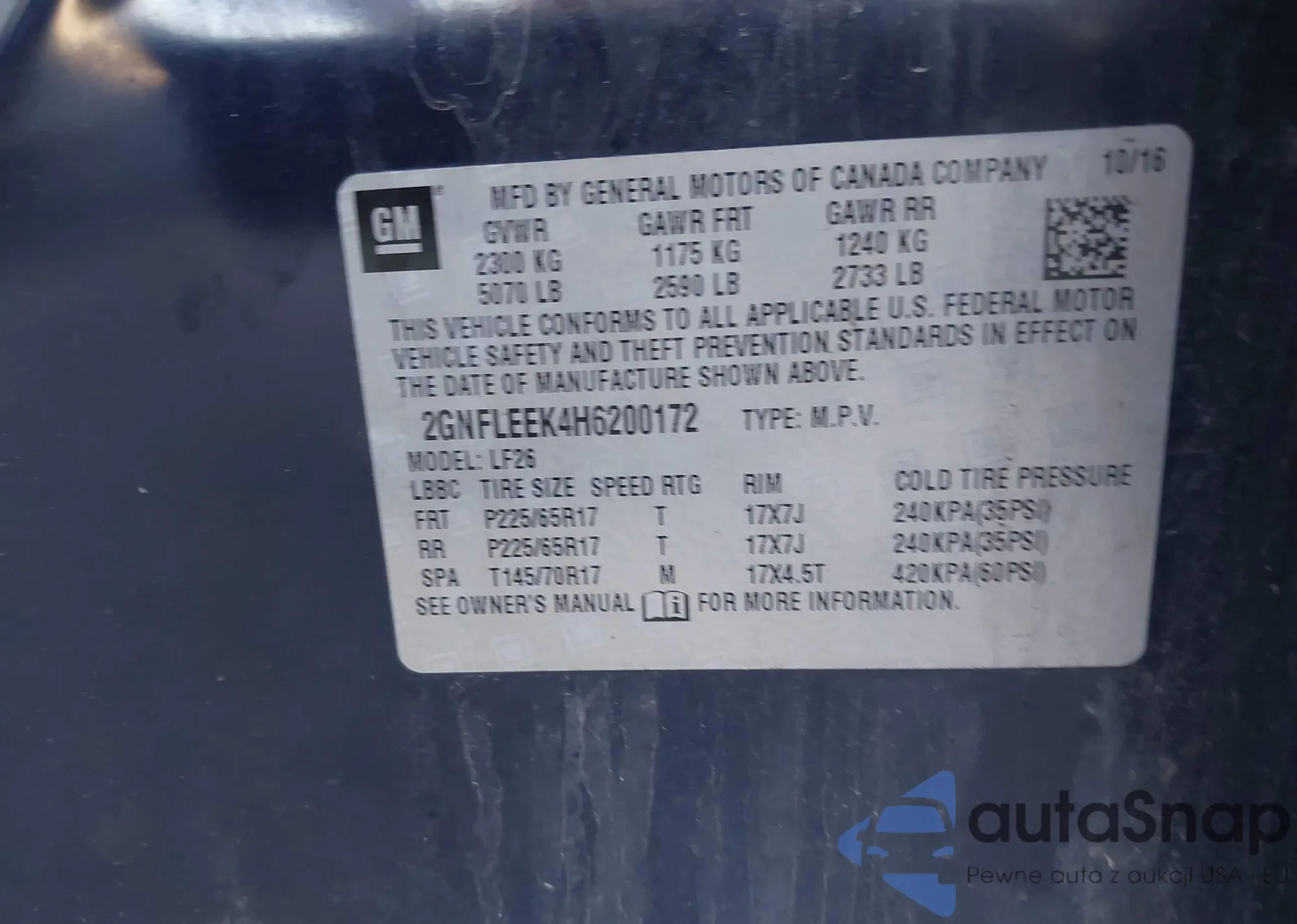 • VIN 2GNFLEEK4H6200172