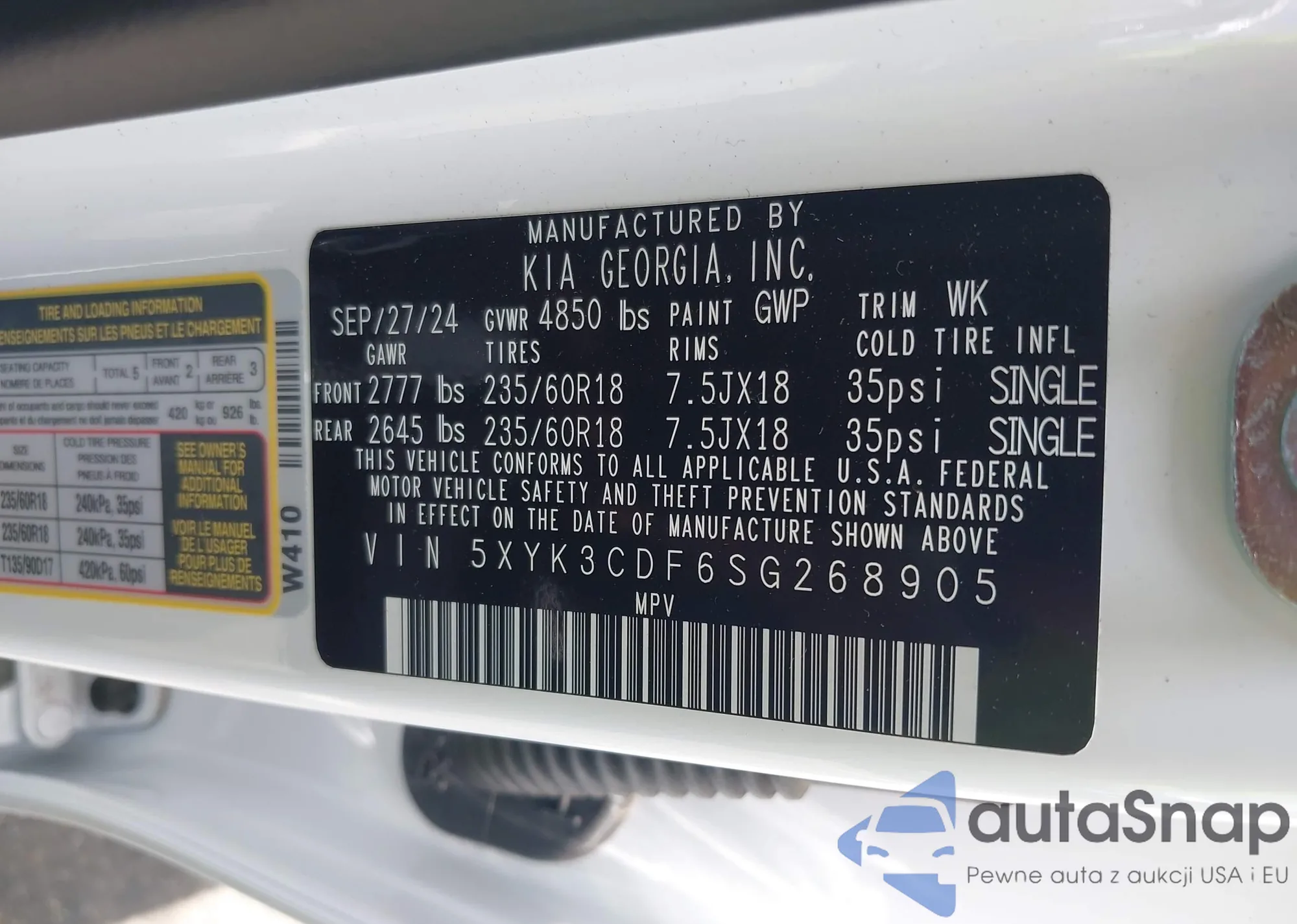• VIN 5XYK3CDF6SG268905