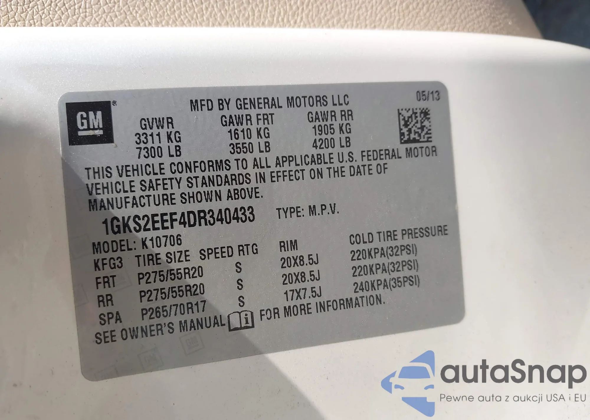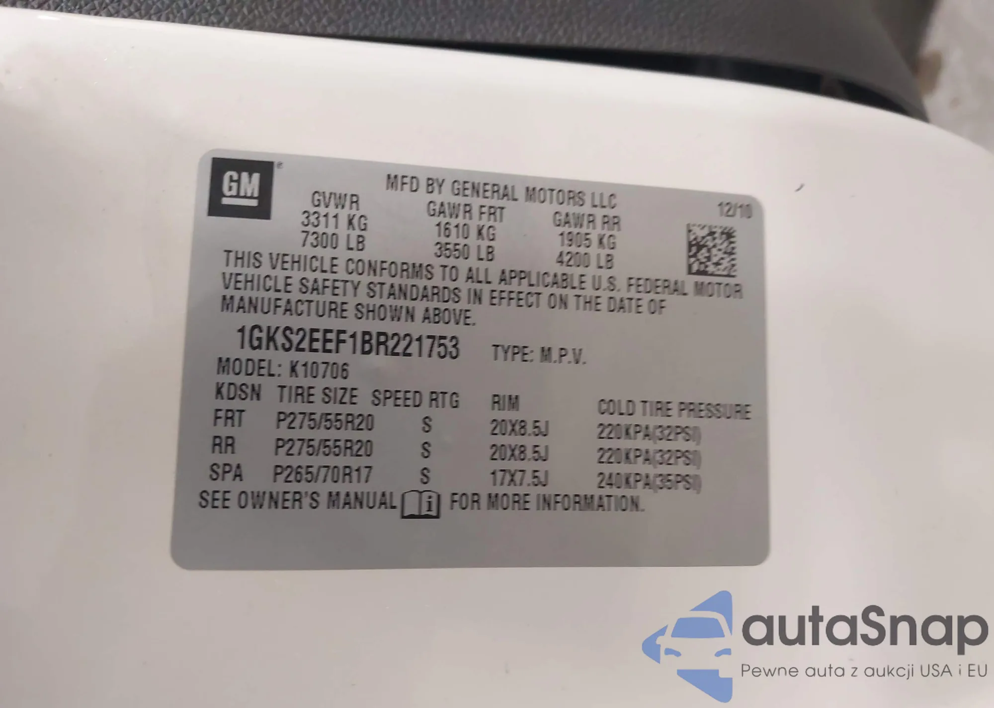 • VIN 1GKS2EEF1BR221753
