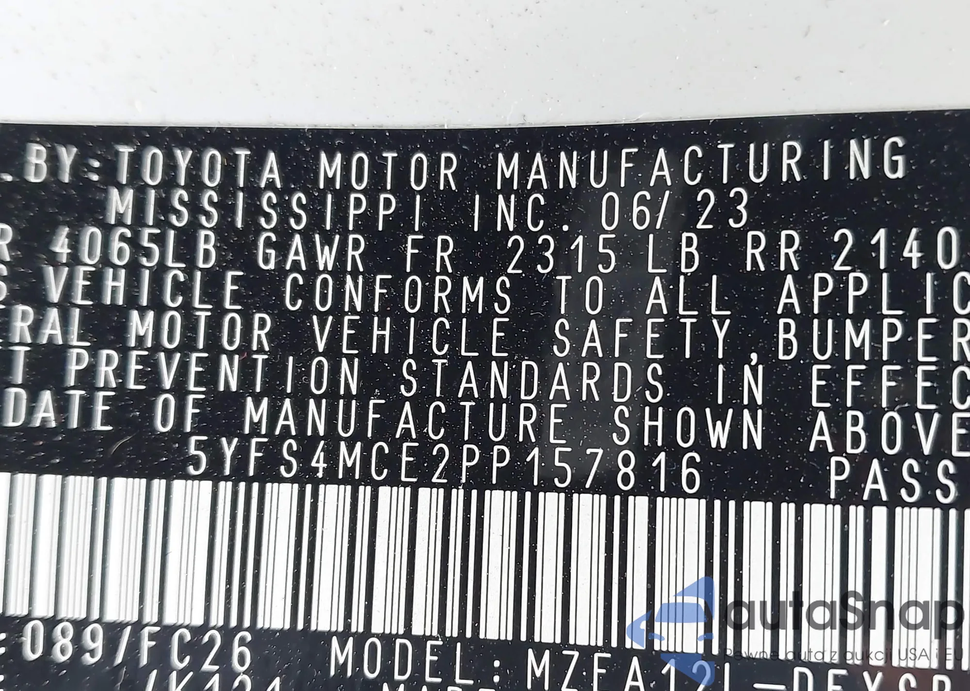 • VIN 5TFCZ5AN6LX228090