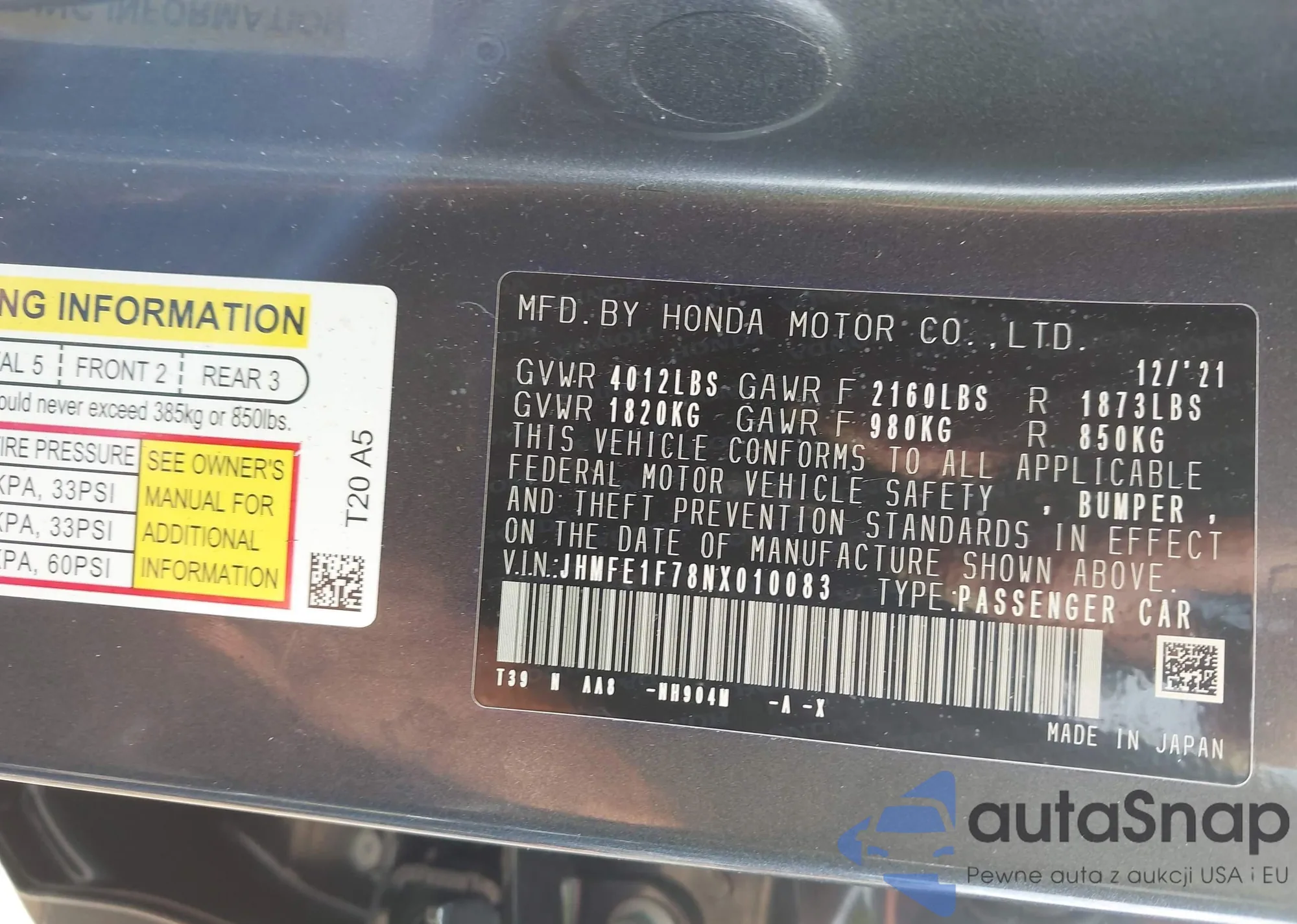 • VIN JHMFE1F78NX010083