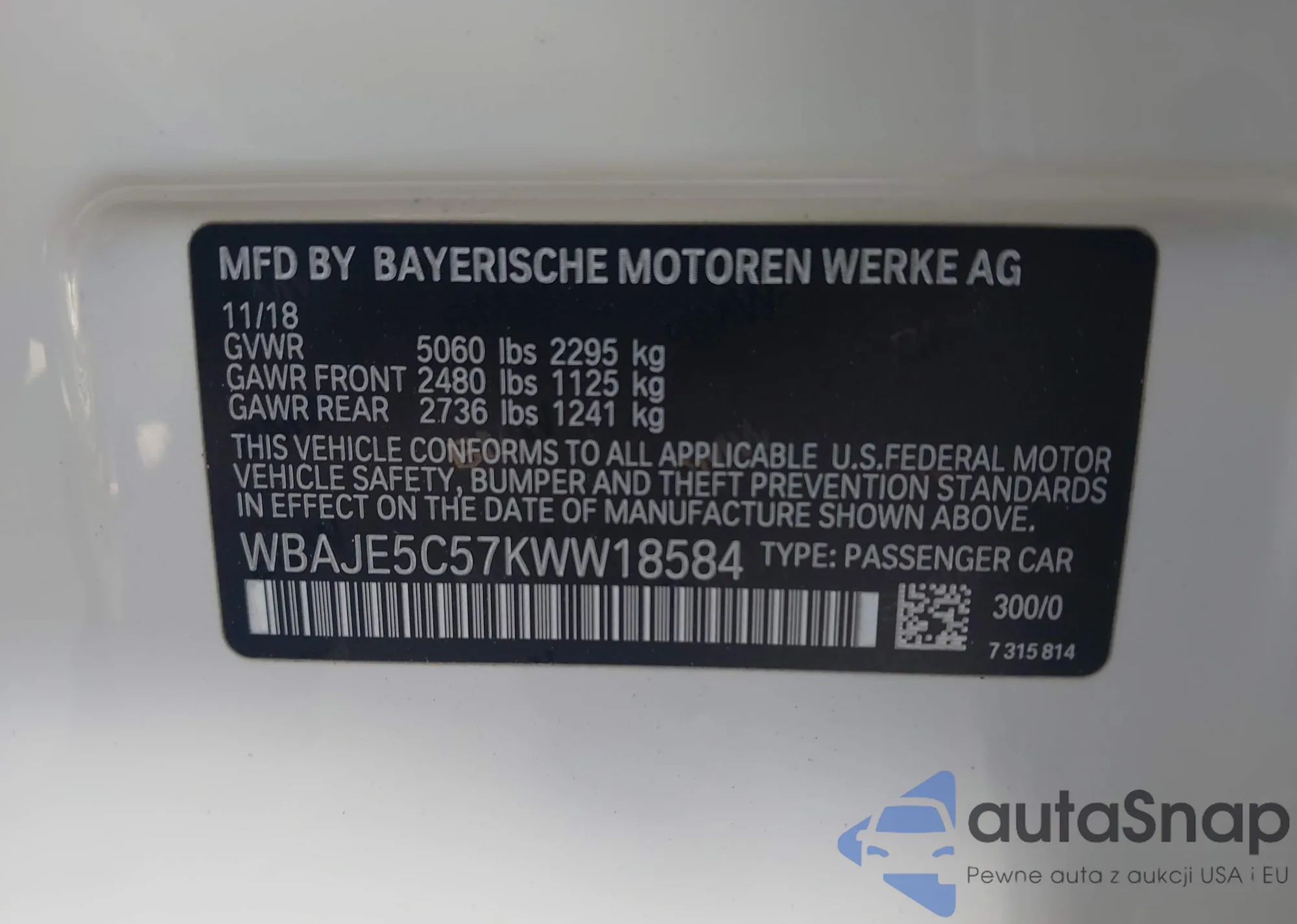 • VIN WBAJE5C57KWW18584