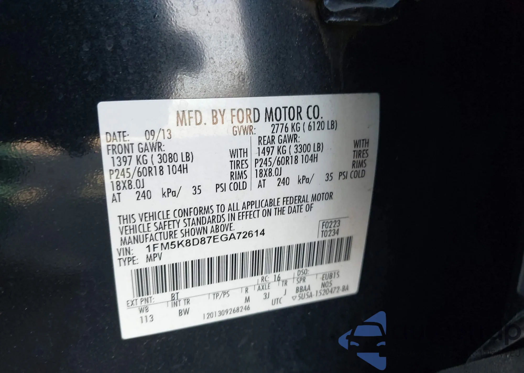 • VIN 1FM5K8D87EGA72614