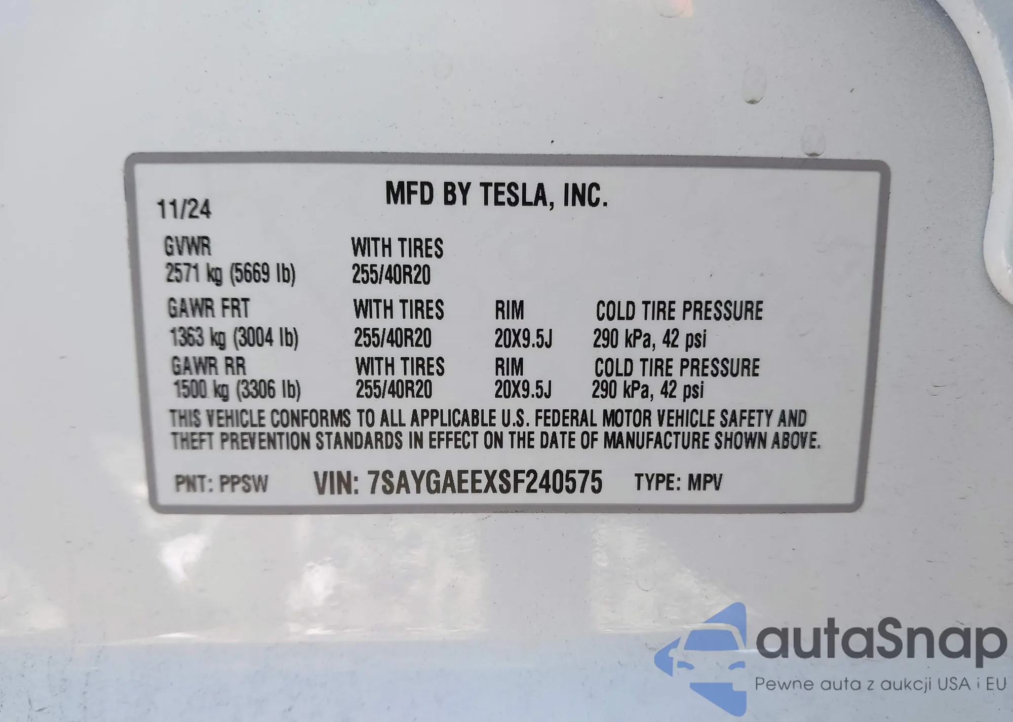• VIN 7SAYGAEEXSF240575