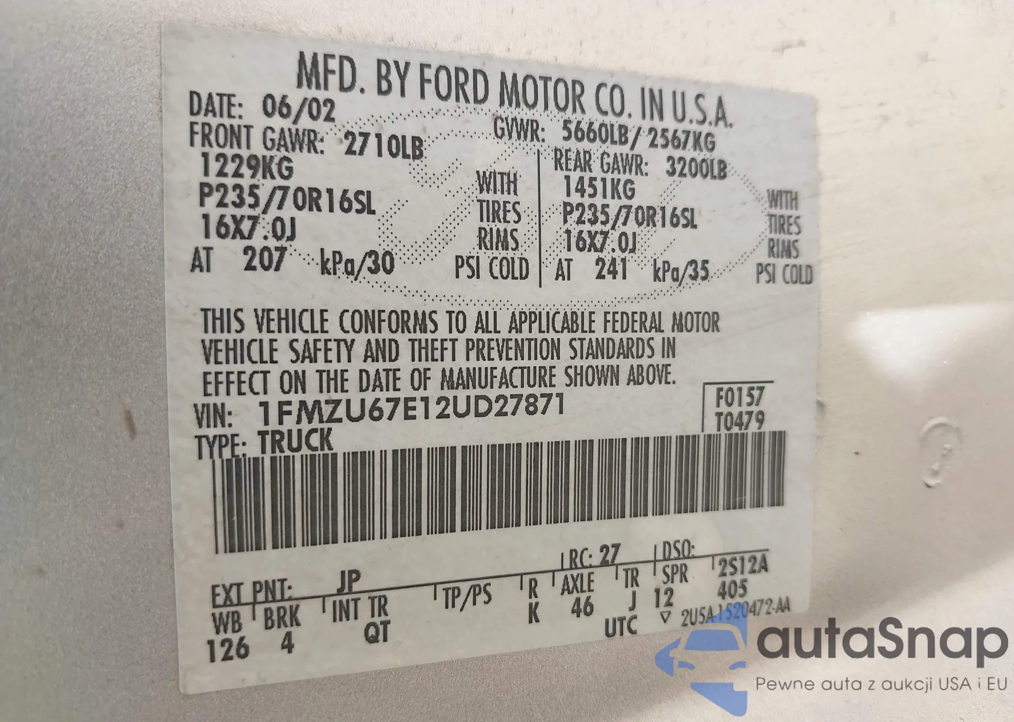 • VIN 1FTYR1ZM0JKA12529