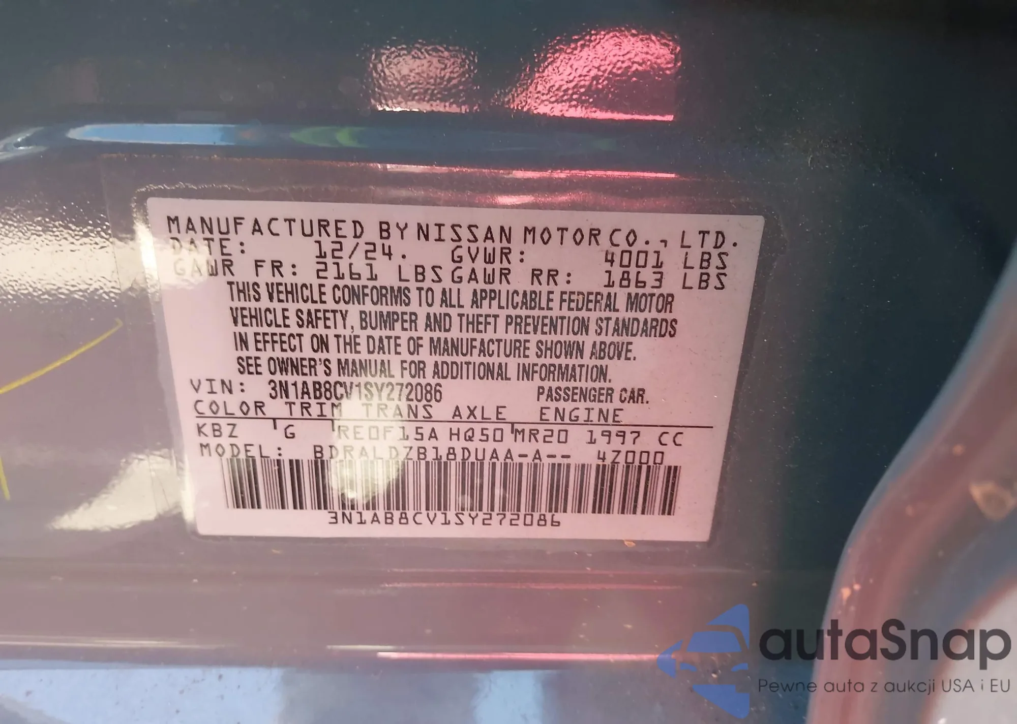 • VIN 3N1AB8CV1SY272086