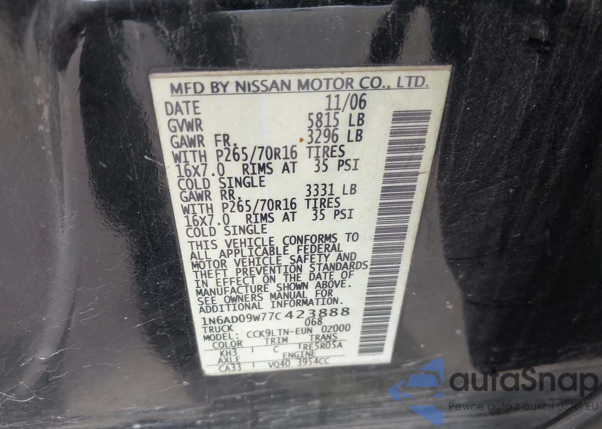 LOT: 43217664 VIN: 1N6AD09W77C423888