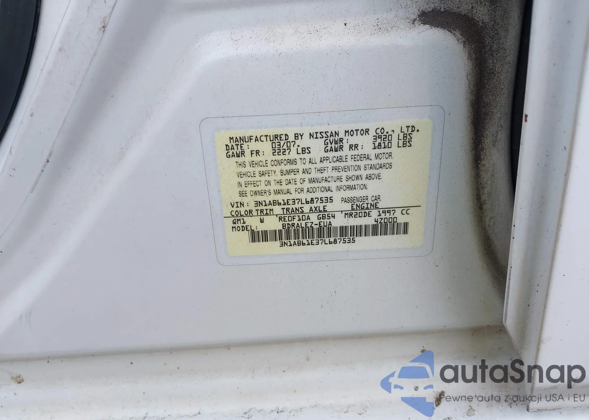 • VIN 3N1AB61E37L687535