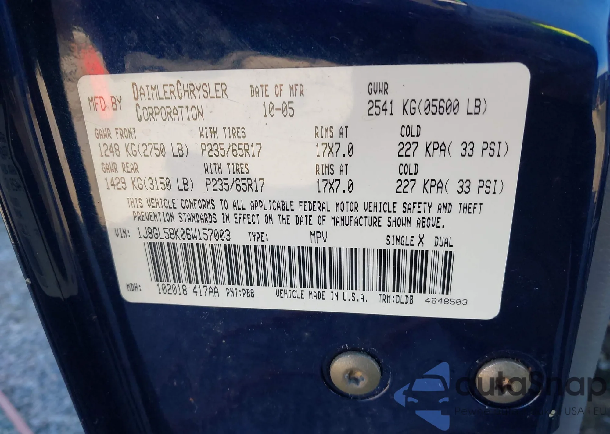 • VIN KL4CJ1SB0JB672980